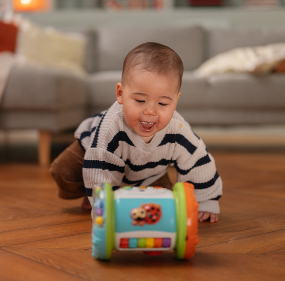 Deze kleurrijke roller stimuleert beweging, muziekplezier en de ontwikkeling van motorische vaardigheden.