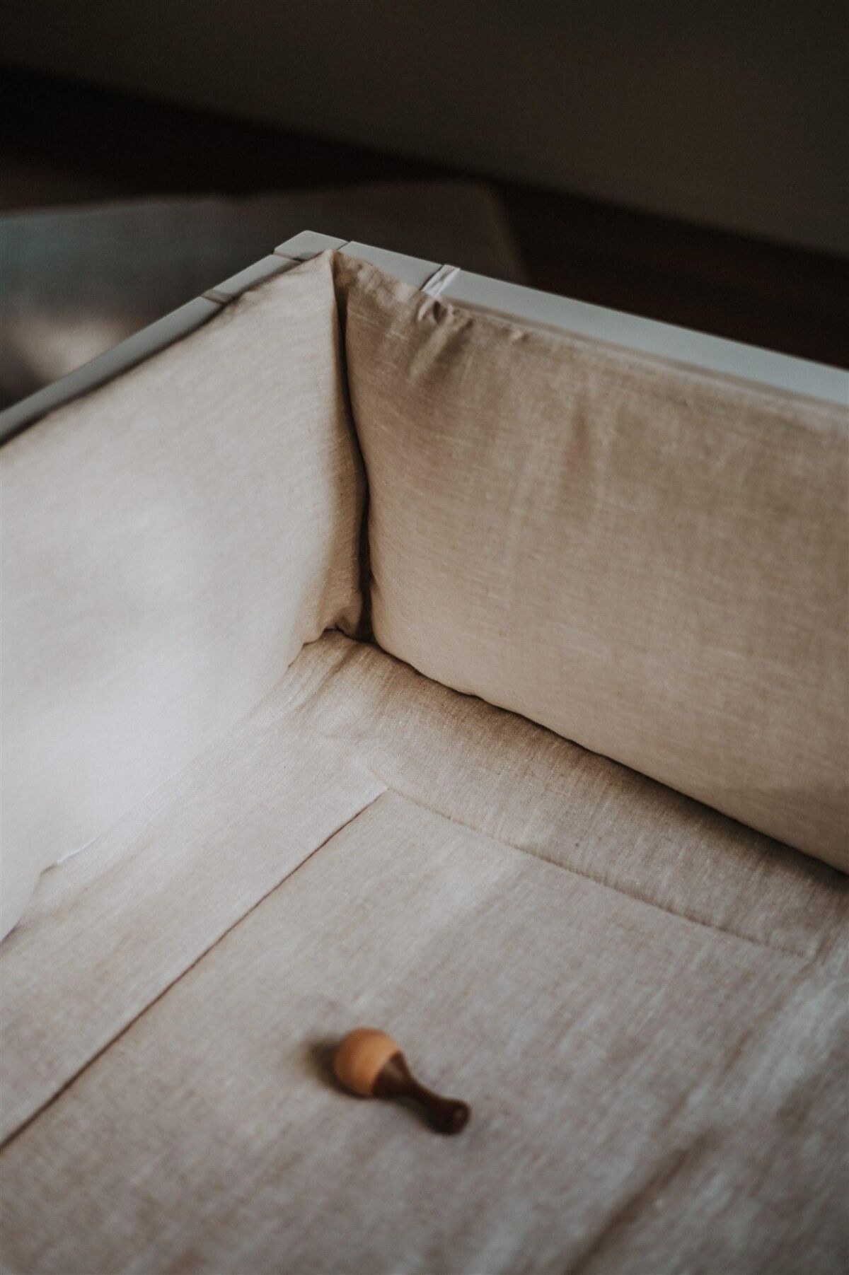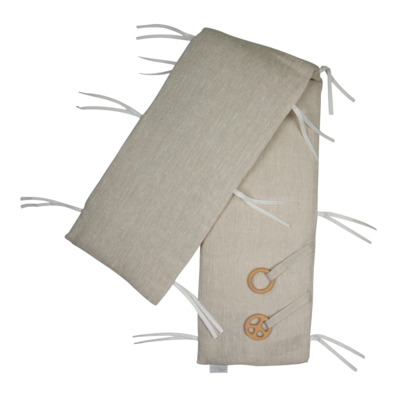 Creëer een veilige en stijlvolle speelplek met de Quax Activity Boxomtrek – Natural Linnen. Deze zachte boxrand van 100% linnen past perfect rond boxen van ca. 93 x 73 cm en combineert comfort, bescherming en spelplezier. De houten speeltjes stimuleren de zintuigen van je baby, terwijl het natuurlijke design rust en warmte brengt in de babykamer. Wasbaar op 30°C – praktisch én mooi in één.