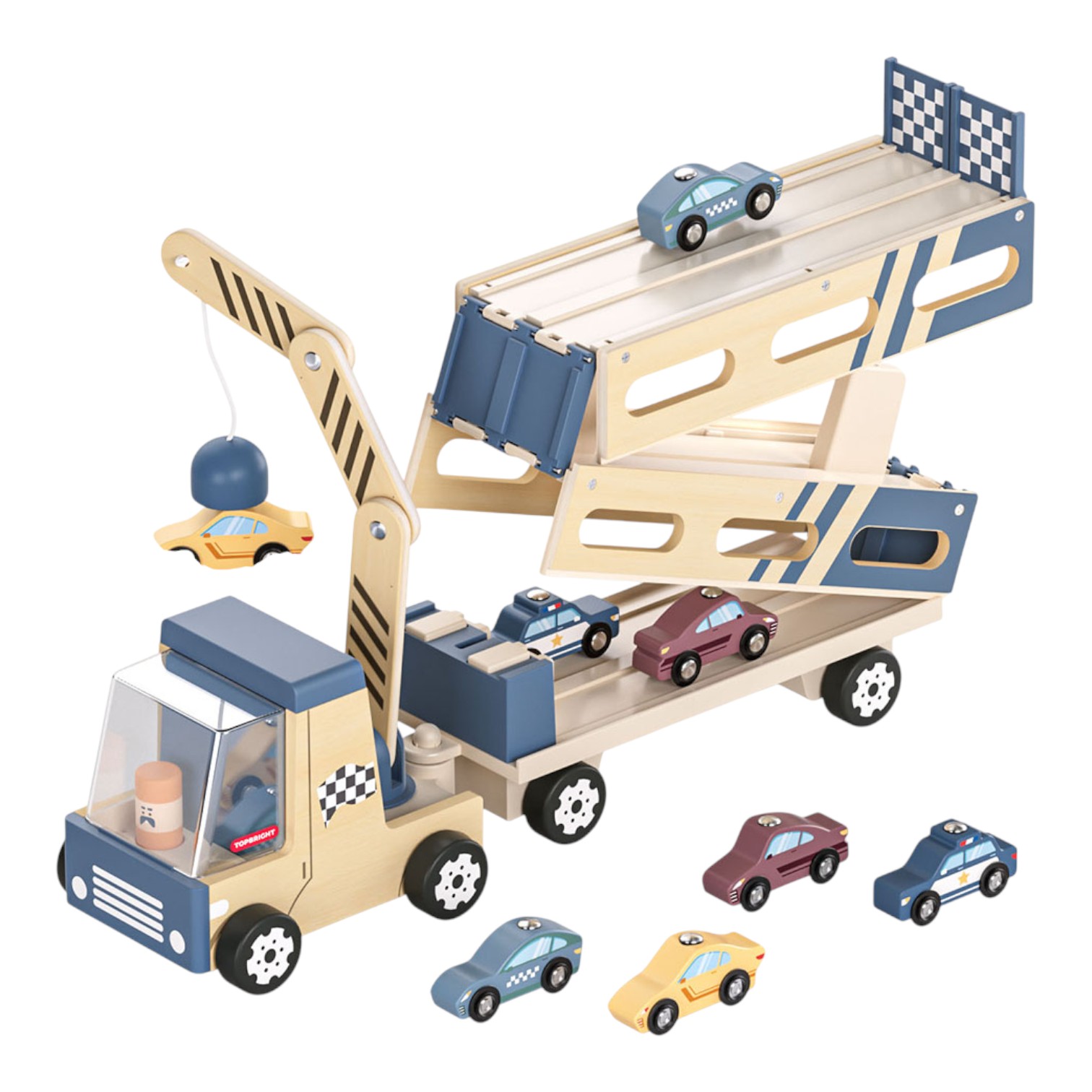 De Roll & Race – Car Transporter is het perfecte speelgoed voor kleine autoliefhebbers! Deze stevige houten autotransporter bevat kleurrijke raceauto's die kinderen kunnen laden, lossen en laten rijden. Spelenderwijs ontwikkelen ze hun fijne motoriek, fantasie en hand-oogcoördinatie.