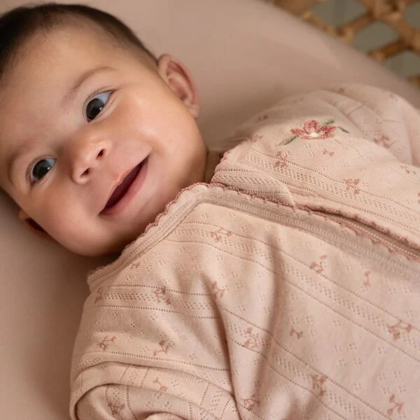 In deze prachtige winterslaapzak met afritsbare mouwtjes zal je kleintje slapen als een roosje. Gemaakt van luxe jersey jacquardstof en afgewerkt met een charmant picotrandje, voelt deze slaapzak net zo fijn aan als hij eruitziet. De slaapzak sluit naar beneden zodat je kindje hem niet gemakkelijk zelf kan openritsen. Er zit een flap over de rits om de gevoelige babyhuid te beschermen.