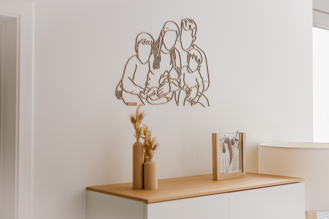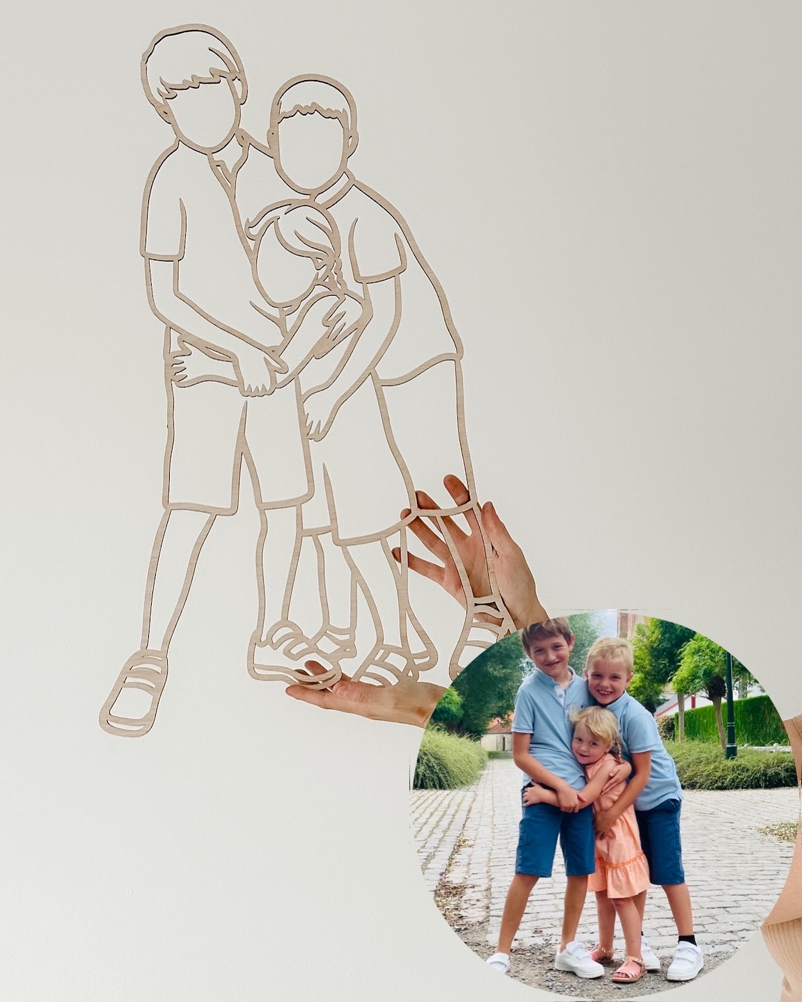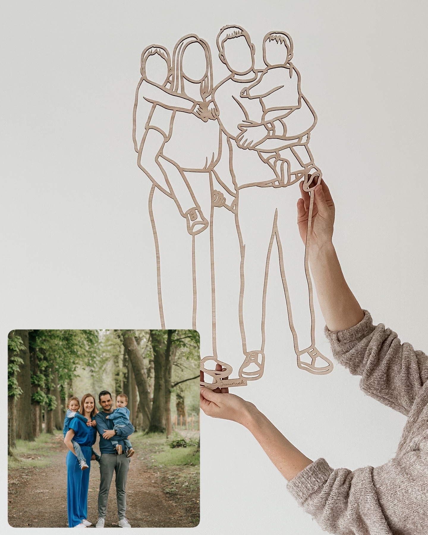 Juuniek zet jouw dierbare foto om in een uniek houten lijnportret, minimalistisch vormgegeven en met de hand uitgesneden uit duurzaam hout. Een persoonlijk kunstwerk dat emotie vangt en warmte toevoegt aan elke ruimte.
