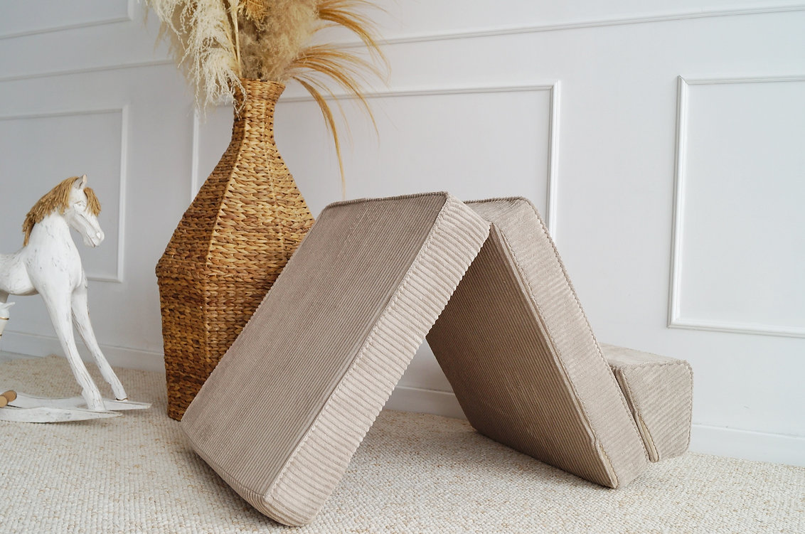 Ontdek de Moje De Lounger 3-in-1: een multifunctioneel kindermeubel dat dient als stoel, ligstoel en speelplek. Gemaakt van duurzaam Velvet Rib (100% polyester, Oeko-Tex 100) met afneembare, wasbare hoes en drie flexibele segmenten voor eindeloze opstellingen. Perfect voor comfort, spel en stijl in elke kinderkamer.
