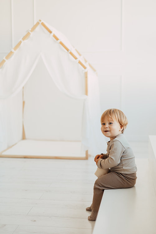 De Moje Playhouse Scandi II is een elegant speelhuisje met een strak houten frame en een tijdloos Scandinavisch ontwerp. Het stevige frame van 110 × 110 cm met kenmerkend schuin dak creëert een veilige en gezellige speelplek. De luchtige cover van 100% mousseline katoen (Oeko-Tex 100) valt losjes tot op de vloer en vormt samen met de gesloten achterwand een knusse, tentachtige sfeer. Aan de voorkant zorgt een centrale split voor een speelse entree, waarbij de panelen met striklinten opzij gebonden kunnen worden. Inclusief zachte, kleurgecoördineerde mat van 4 cm dik. Een stijlvolle en rustgevende toevoeging aan elke kinderkamer of speelhoek.