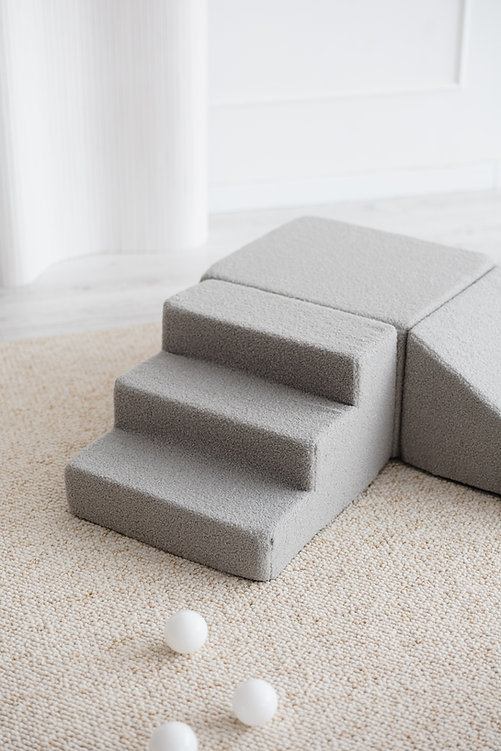 De Bouclé 3 Elements-set van MOJE is een stijlvolle en veilige speelset, perfect als aanvulling op een ballenbad of als zelfstandig speelparcours. De set bestaat uit een trapje, hoge driehoek en blok, bekleed met luxe bouclé stof (100% polyester, Oeko-Tex 100) en gevuld met stevig schuim. Ideaal om motoriek, balans en creativiteit te stimuleren, terwijl kinderen klimmen, bouwen en ontdekken. Het minimalistische design en de zachte kleuren maken de set een elegante toevoeging aan elke kinderkamer of speelhoek. Afneembare, wasbare hoezen zorgen voor eenvoudig onderhoud en langdurig speelplezier.