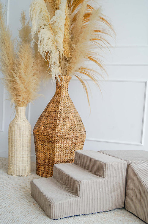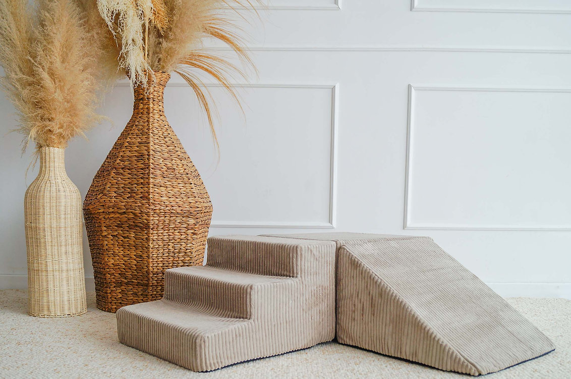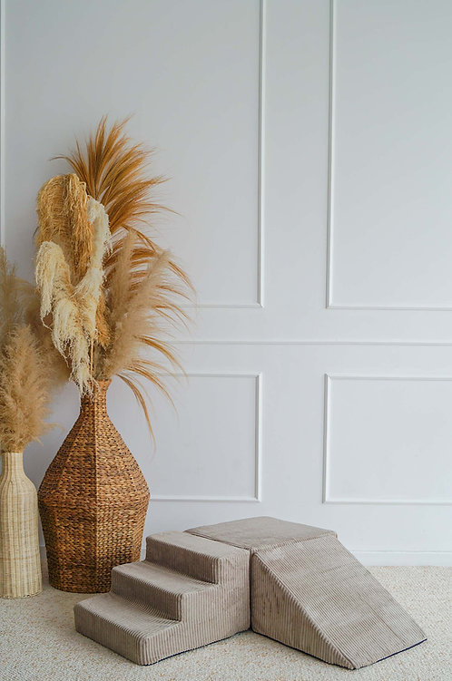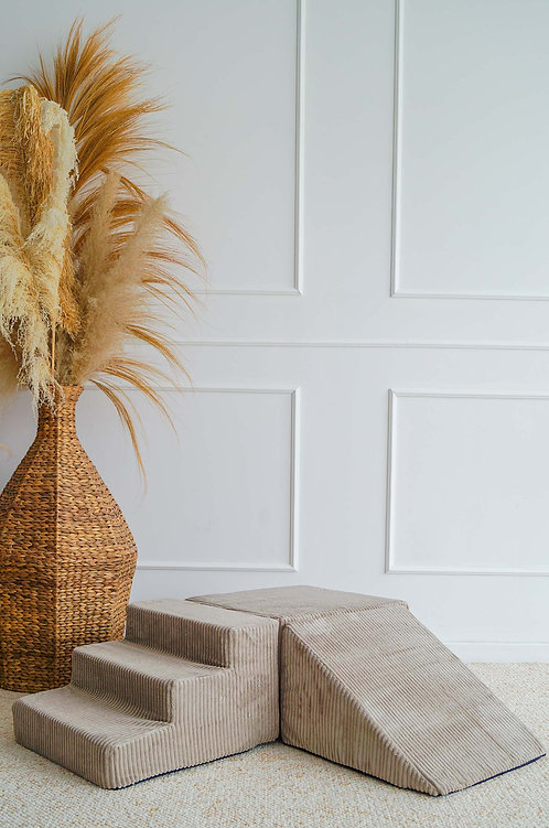 De Rib Corduroy 3-delige foamset van MOJE is een veelzijdige speeloplossing, perfect zelfstandig of in combinatie met een ballenbad. De set bestaat uit een trapje, schuine driehoek en blok, bekleed met zachte, duurzame Rib Corduroy (100% velvet polyester, Oeko-Tex 100) met elegante ribstructuur. Ideaal om te klimmen, bouwen, glijden en creatief te spelen, terwijl motoriek, balans en coördinatie worden gestimuleerd. Afneembare, wasbare hoezen maken onderhoud eenvoudig. Een veilige, stijlvolle en functionele aanvulling op elke kinderkamer of speelhoek.