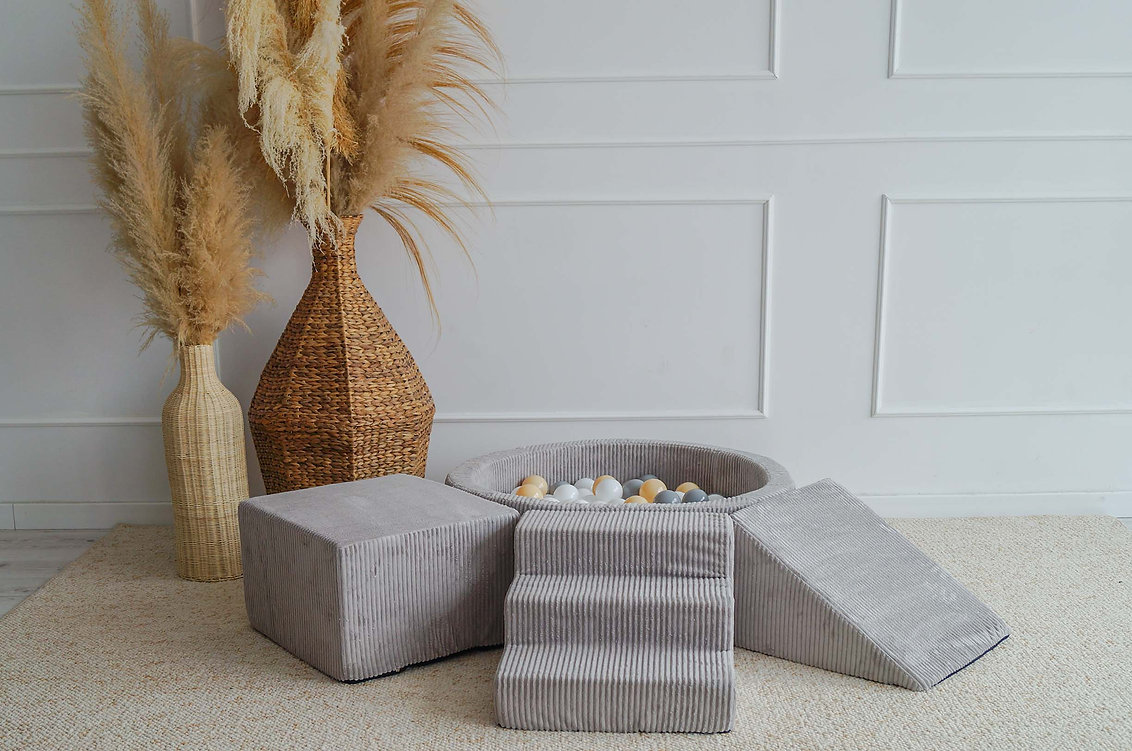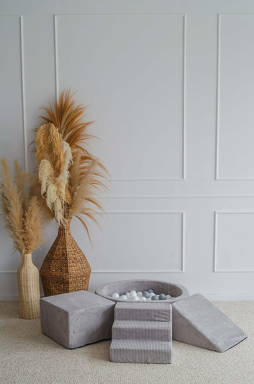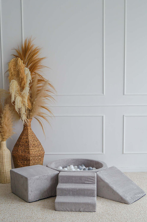 MojeFoam speelset Velvet Rib (3 stuks) + ballenbad 90x30 + 200 ballen Grey