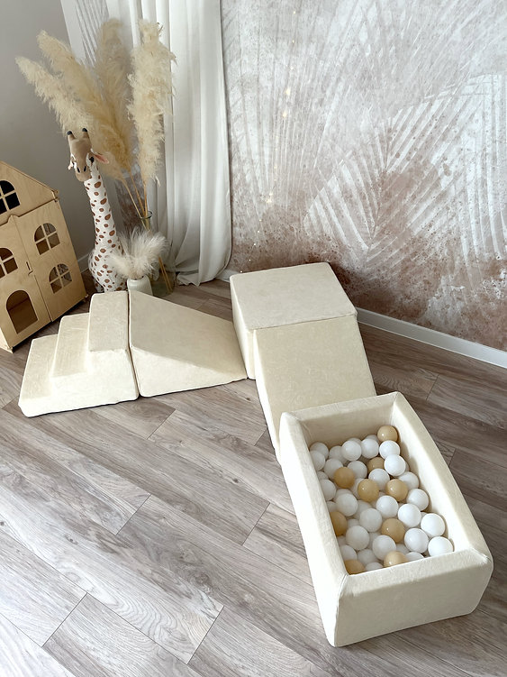 MojeFoam speelset Soft Velvet (5 stuks) + ballenbad 65x35x30 + 100 ballen Ecru