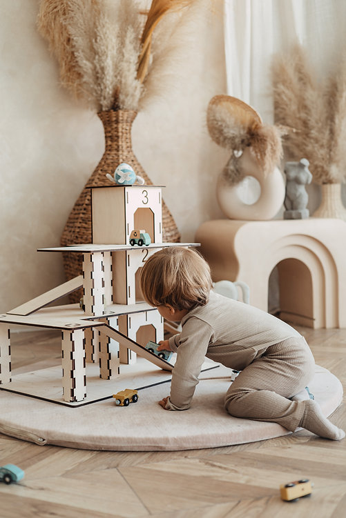 De natuurlijke structuur en warme kleur van het berkenmultiplex geven het product een universele en elegante uitstraling, geschikt voor zowel kinderkamers als moderne kantoor- of woonkamerinrichtingen. Deze houten garage combineert functionaliteit met esthetiek en is milieuvriendelijk geproduceerd.