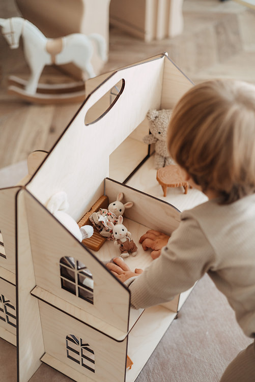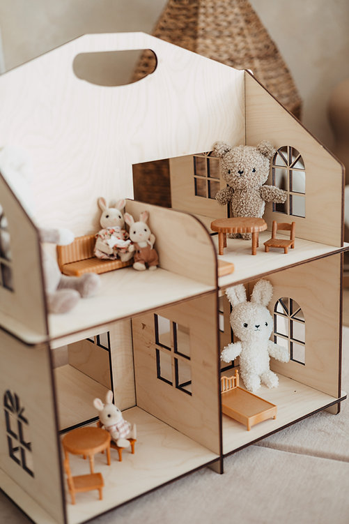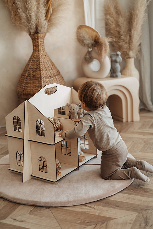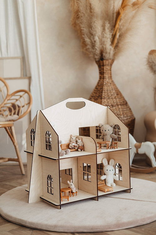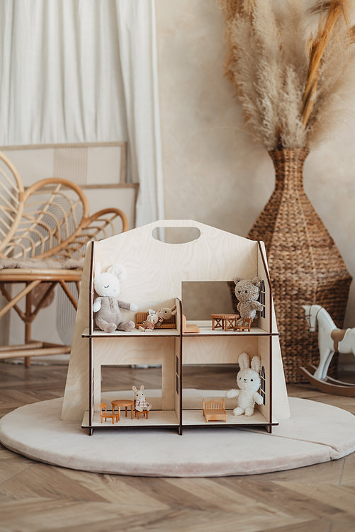 Het Moje Houten Poppenhuis combineert Scandinavisch minimalisme met een open, creatieve speelruimte die perfect aansluit bij Montessori-principes. Gemaakt van duurzaam FSC-gecertificeerd berken multiplex biedt het huisje een veilige, lichte en stabiele speelomgeving voor poppen en kleine figuren. Dankzij het open ontwerp en de tijdloze vormgeving stimuleert het de fantasie en past het moeiteloos in moderne en natuurlijke kinderkamers. Ideaal voor urenlang vrij spel en een stijlvolle toevoeging aan iedere speelhoek.