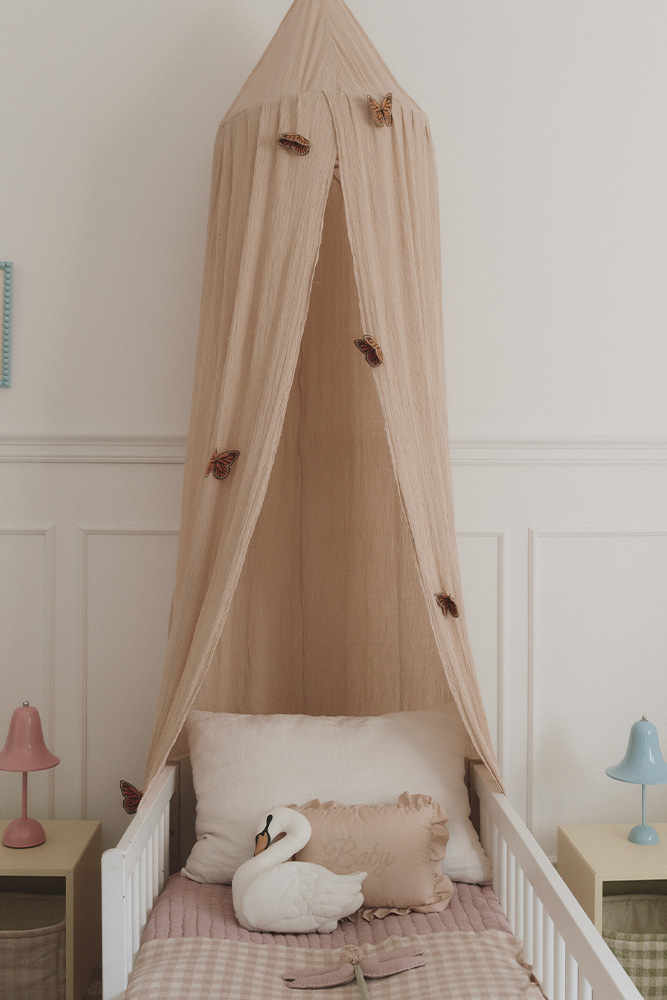 Klamboe Canopy Crepe Swan Rose – magisch hoekje voor de kinderkamer