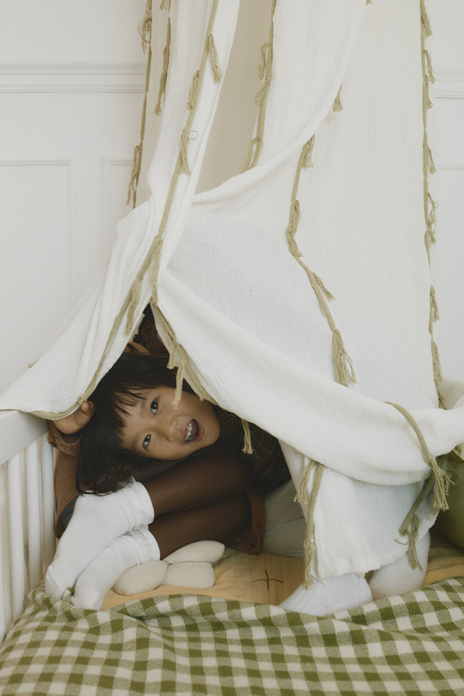 De Canopy Crepe Swan Ivory combineert elegantie, handgemaakt vakmanschap en een zachte, magische uitstraling, perfect voor een inspirerende en gezellige kinderkamer.
