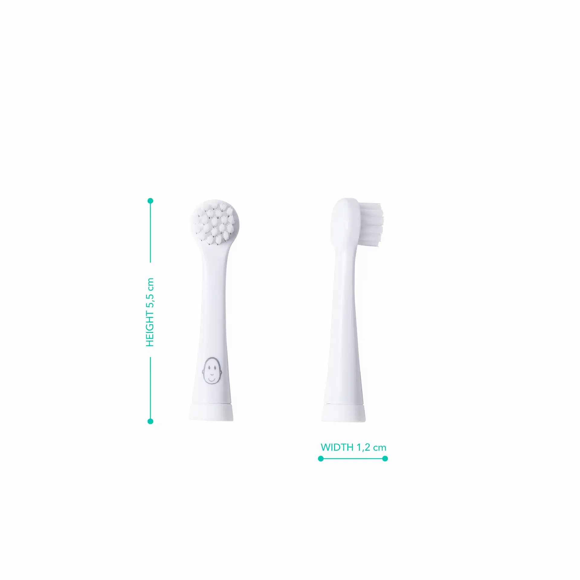 Matchstick Monkey vervangborstels voor elektrische sonische tandenborstel (2 stuks) zorgen voor een zachte maar effectieve reiniging van kindertandjes. De borstels zijn speciaal ontworpen voor een goede pasvorm, comfortabel gebruik en optimale mondhygiëne. Ideaal om de tandenborstel hygiënisch en veilig te blijven gebruiken.