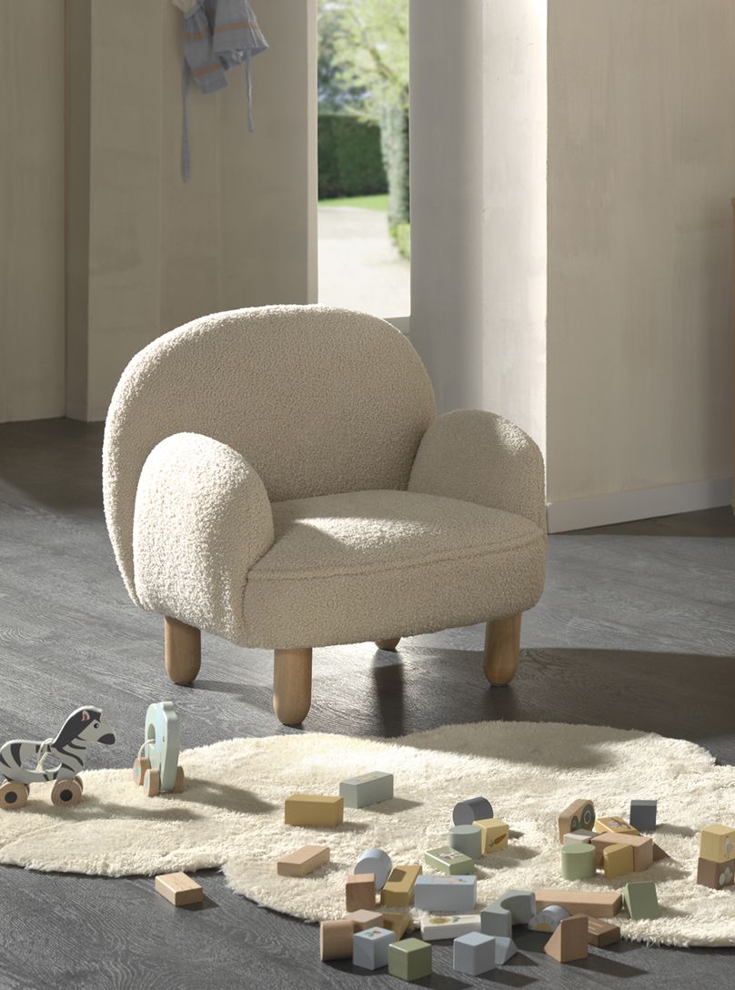 De kinderfauteuil blauw uit de ROCKY collectie combineert speelse elegantie met comfortabel zitgemak. De zachte bouclé stof en afgeronde vormen zorgen voor een knusse plek waar je kindje kan ontspannen, lezen of dromen. Dankzij de stevige houten poten is de fauteuil stabiel en duurzaam, en een stijlvolle aanvulling voor elke baby- of kinderkamer én de woonkamer.