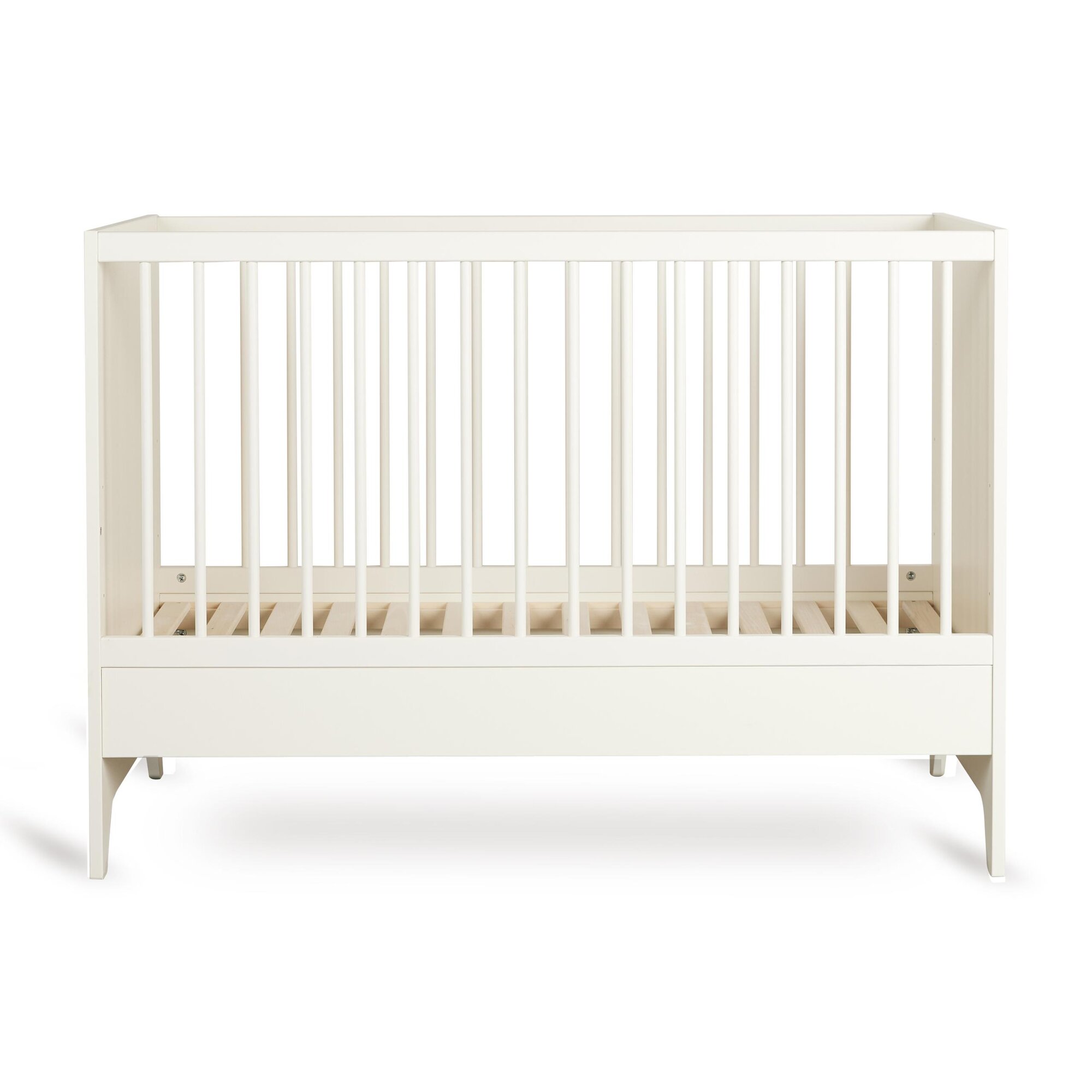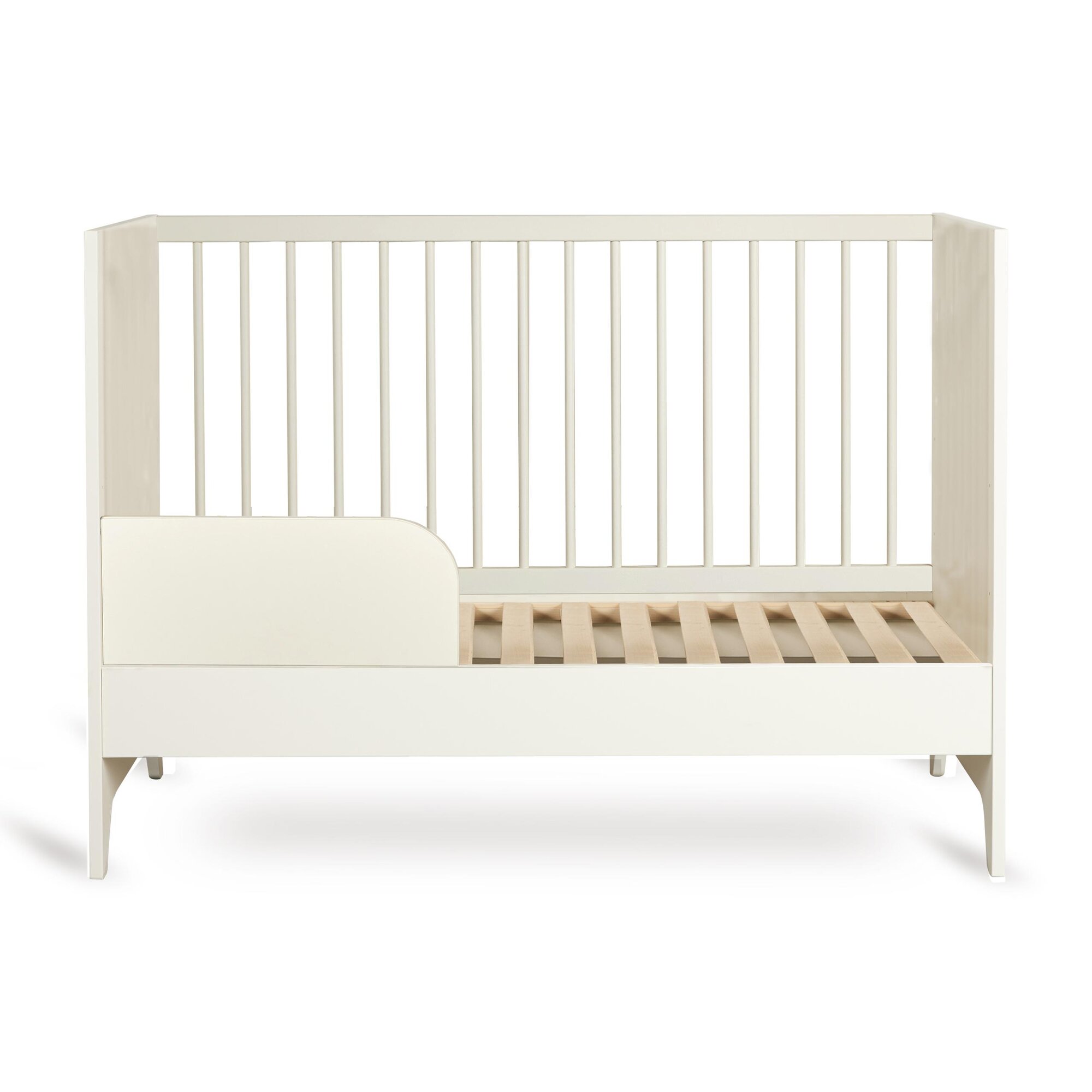 Het Tsugi babybed combineert een licht, modern design met praktische flexibiliteit. De verstelbare lattenbodem in drie hoogtes biedt vanaf dag één comfort en ergonomie. Zodra je kleintje de babytijd ontgroeit, transformeer je het bed eenvoudig tot een half-open sofabedje met de inbegrepen uitvalbescherming, ideaal om te lezen, rusten of spelen. Met afgeronde lijnen, een monochrome look en speelse details sluit dit bed perfect aan bij de tijdloze elegantie van de Tsugi-collectie en groeit het moeiteloos mee met je gezin.