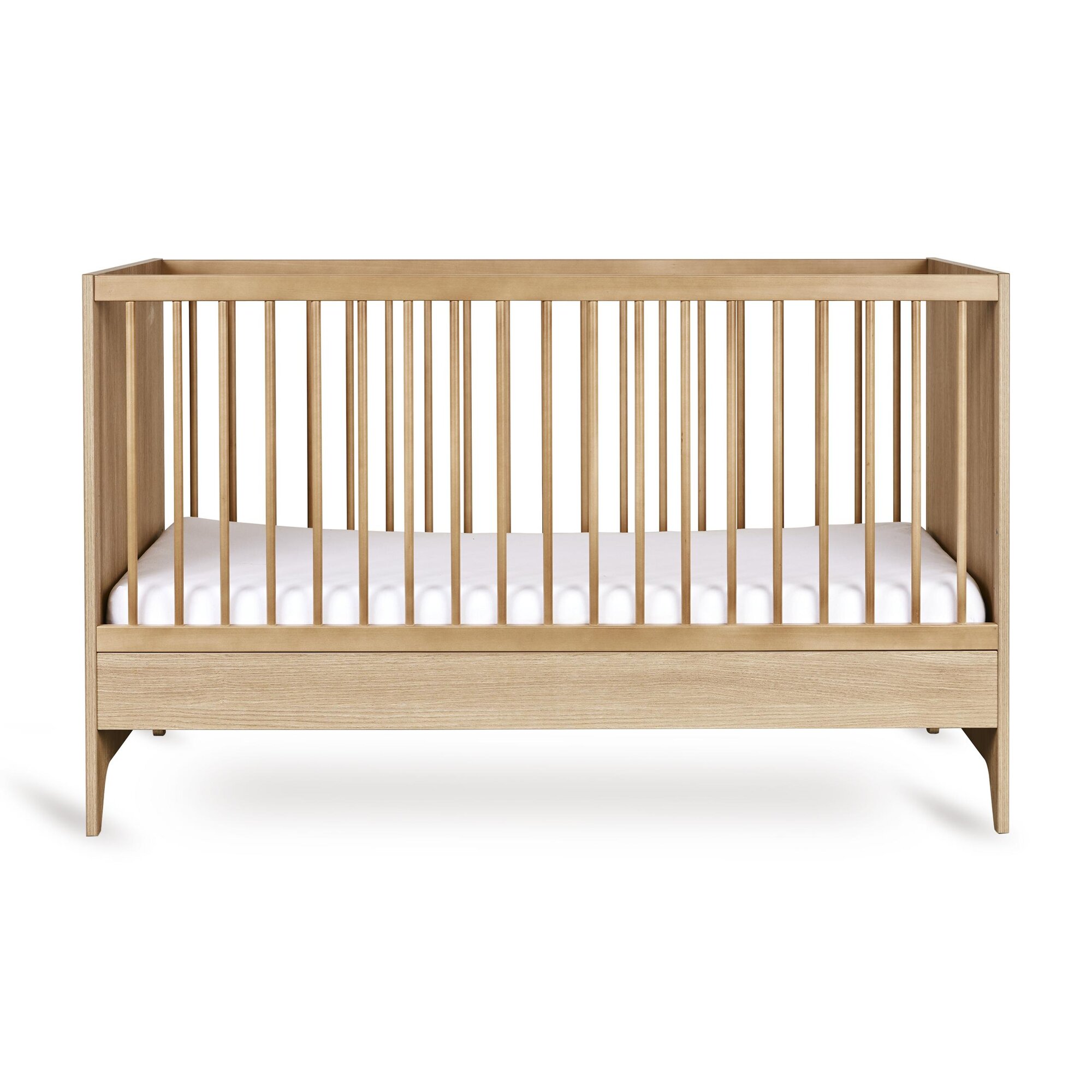 Het Tsugi meegroeibed combineert een speels, modern design met praktische veelzijdigheid. De verstelbare lattenbodem met drie hoogtes biedt comfort vanaf dag één, terwijl het bed moeiteloos meegroeit: door één spijlerzijde te vervangen door de inbegrepen uitvalbeschermer ontstaat een half-open peuterbed. Met afgeronde lijnen, tijdloze elegantie en de lichte, monochrome uitstraling van de Tsugi-collectie brengt dit bed rust en speelsheid in elke kinderkamer.