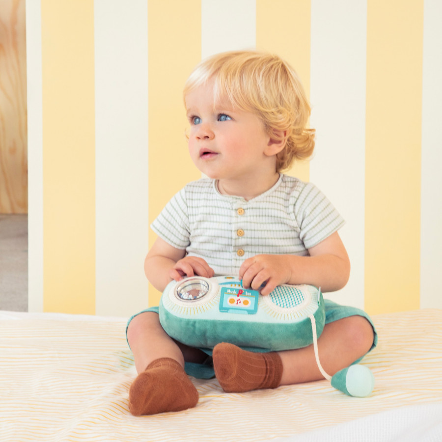 Radio Joe brengt non-stop speelplezier! Deze zachte stoffen radio met Joe de Draak laat baby's vanaf 9 maanden 7 vrolijke geluiden ontdekken. Met rammelaar, schuifknop, flexibele microfoon en verschillende texturen stimuleert dit educatieve speelgoed het gehoor, de tastzin en de fantasie. Licht, veilig en makkelijk mee te nemen voor muzikaal plezier, waar je ook bent.