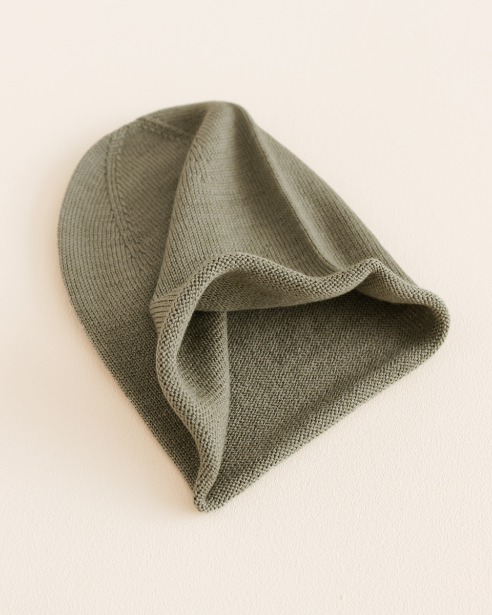 De muts is gebreid in een zachte jerseysteek en gemaakt van 100% extra fijne Italiaanse merinowol (Oeko-Tex gecertificeerd & mulesingvrij). Merinowol is temperatuurregulerend, ademend en antibacterieel, waardoor deze beanie ideaal is voor kinderen met een gevoelige huid of eczeem — zonder jeuk.