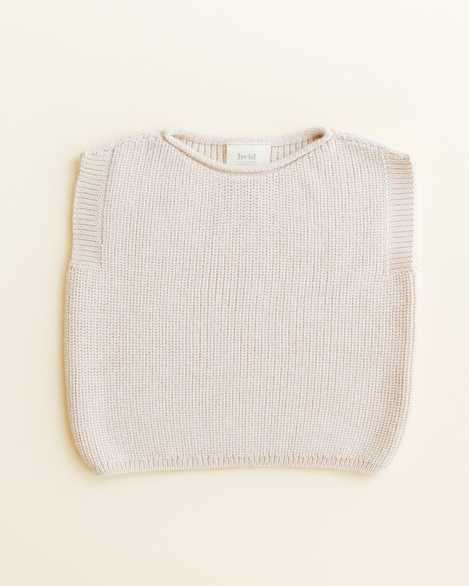 De Hvid Harvey vest is een tijdloze debardeur in 100% merinowol, ontworpen voor optimaal comfort bij baby's en jonge kinderen. Dit mouwloze truitje is ideaal als extra laagje, zonder je kindje te laten oververhitten.