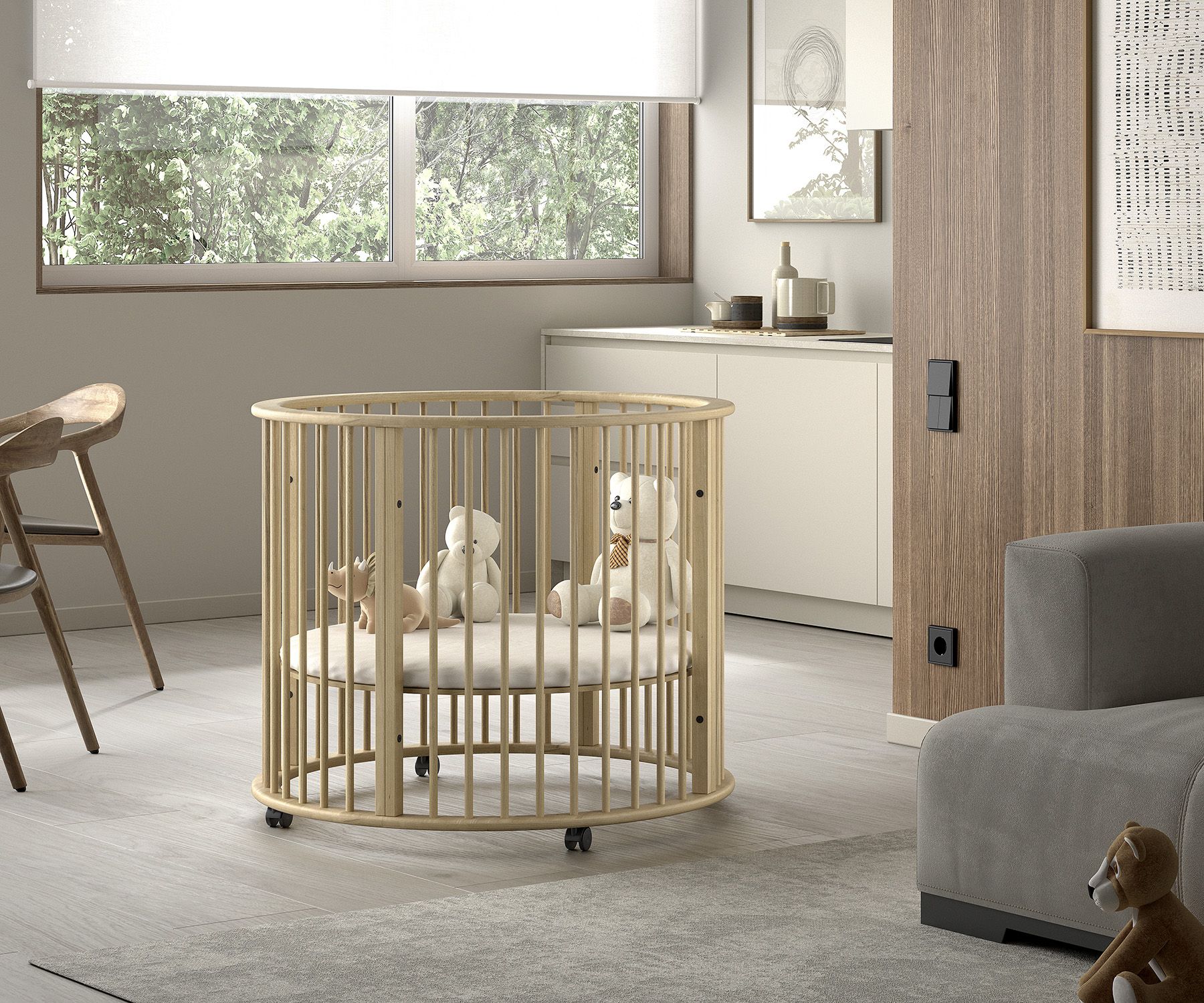Het Jaxx park (ø 90 cm) uit de DINO collectie combineert stijl en functionaliteit in een zachte klei tint. Dankzij de ronde vorm, 3 verstelbare bodemhoogtes en optionele wieltjes groeit het park mee met je baby en past het moeiteloos in elk interieur.