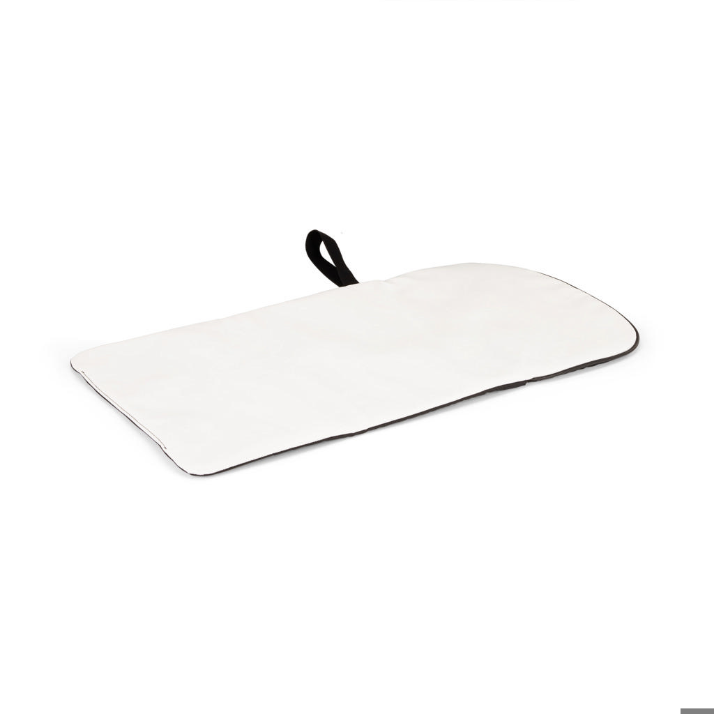 - Verschoonmat met magneetsluiting en polsband die openvouwt voor een afneembare oppervlakte om de baby op te verschonen.