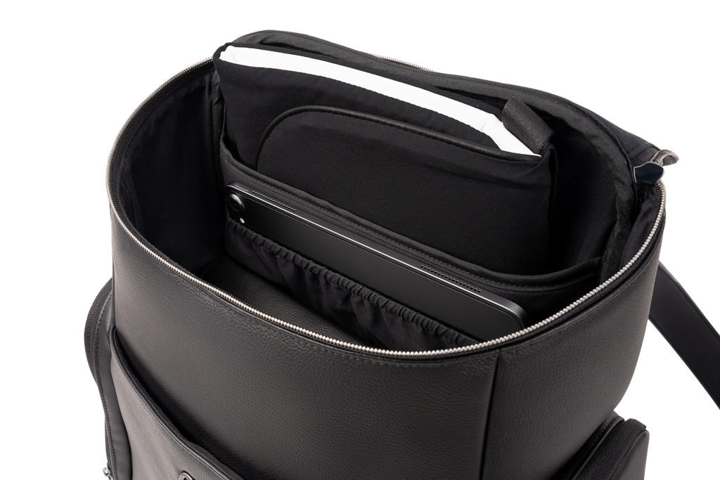 - Meerdere opbergvakken aan de binnenkant en twee elastische houders voor waterflessen om alles netjes georganiseerd te houden