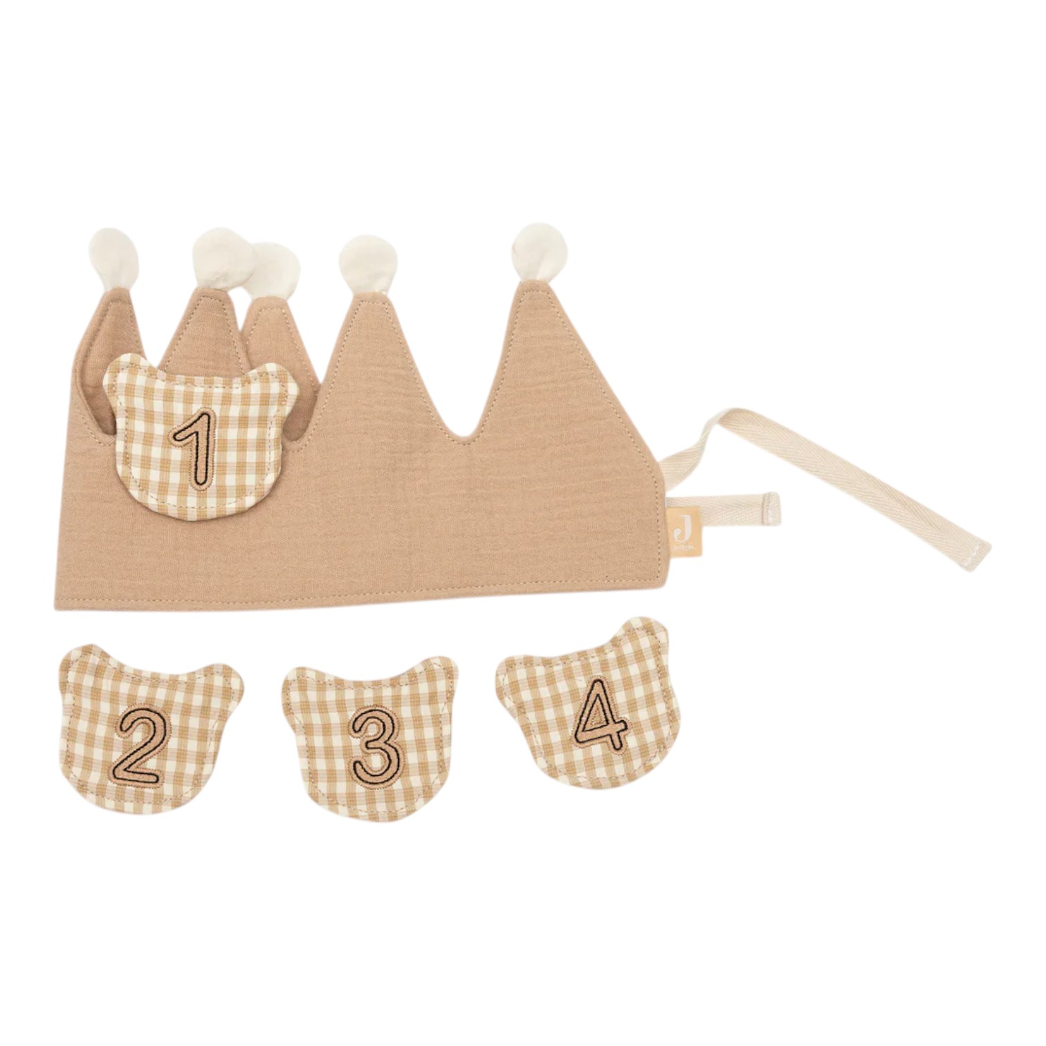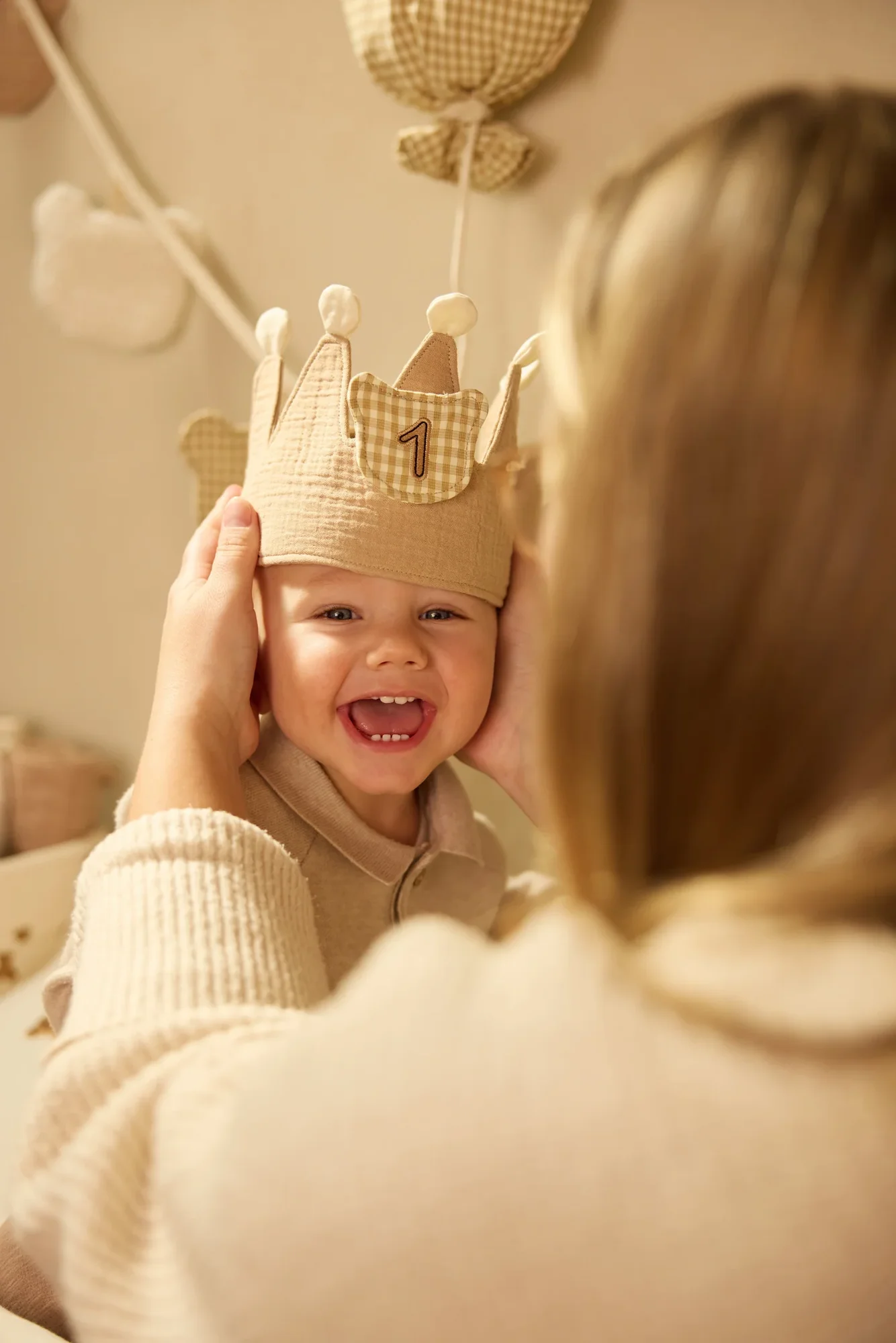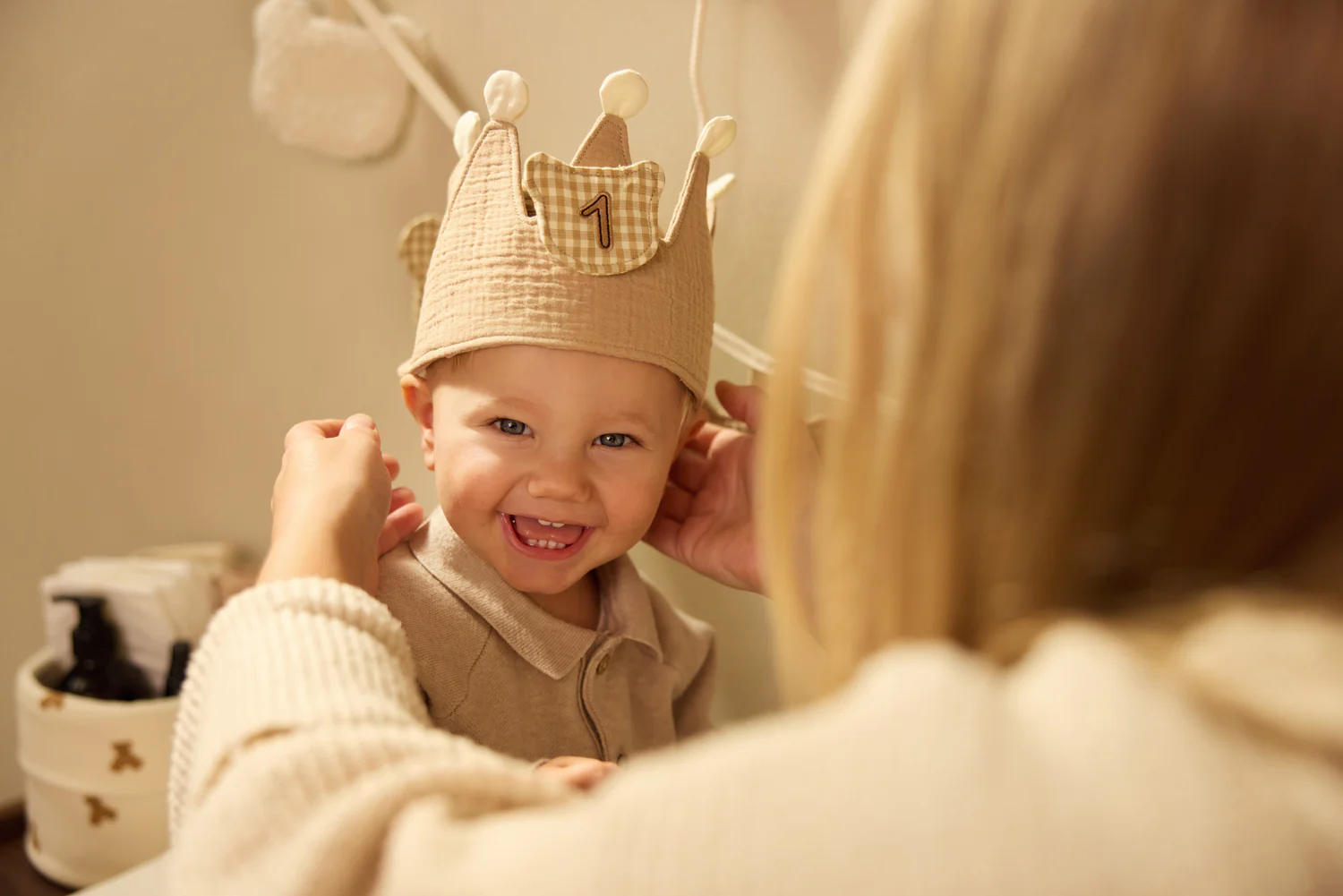 Het verjaardagskroontje met cijfers 0 t/m 4 maakt elke verjaardag extra feestelijk. Zodra je kindje het kroontje opzet, begint het feestje meteen. De zachte kroon zit comfortabel en groeit mee dankzij de losse cijfers van 0 t/m 4. Zo gebruik je hetzelfde kroontje van de eerste verjaardag tot en met de peuterjaren.