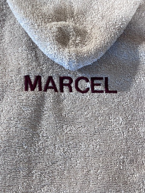 Na je aankoop nemen wij persoonlijk contact met je op om de borduring verder te bespreken. Je kan kiezen uit verschillende lettertypes en diverse kleuren garen, zodat het badjasje volledig aansluit bij jouw smaak of die van de ontvanger.