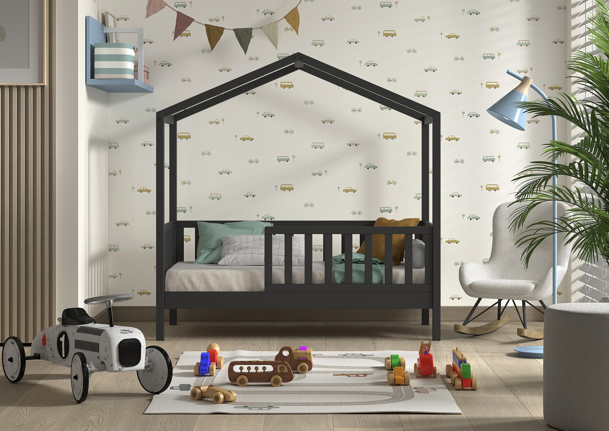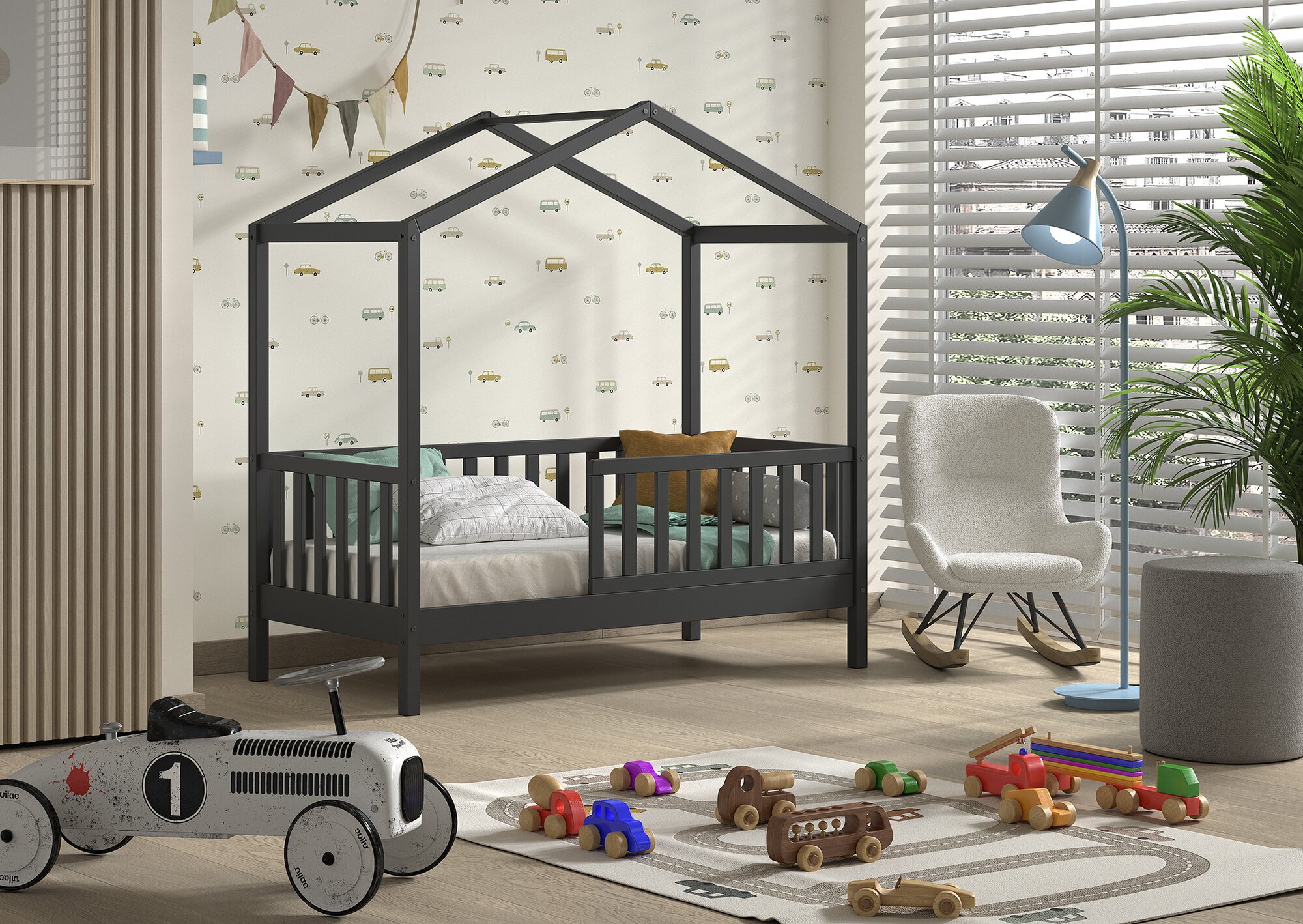 JaxxDallas peuter huisbed 70 x 140 cm Antraciet