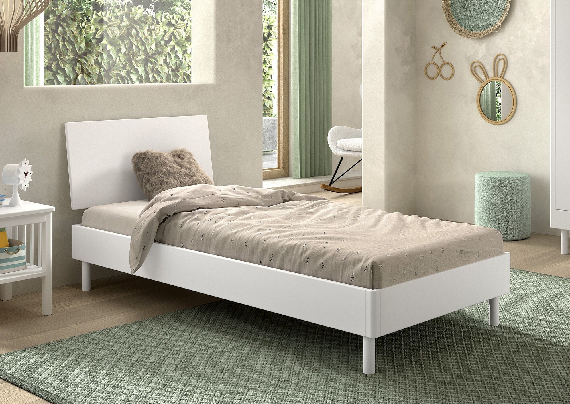 Het FORREST BEECH bed (90 x 200 cm) in wit is vervaardigd uit hoogwaardige Europese beuk, wat garant staat voor ongeëvenaarde stevigheid en stabiliteit. Het witgelakte hoofdbord en de omlijsting geven het bed een warme en stijlvolle uitstraling.
