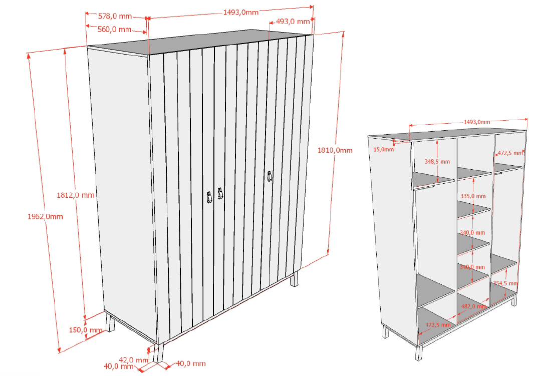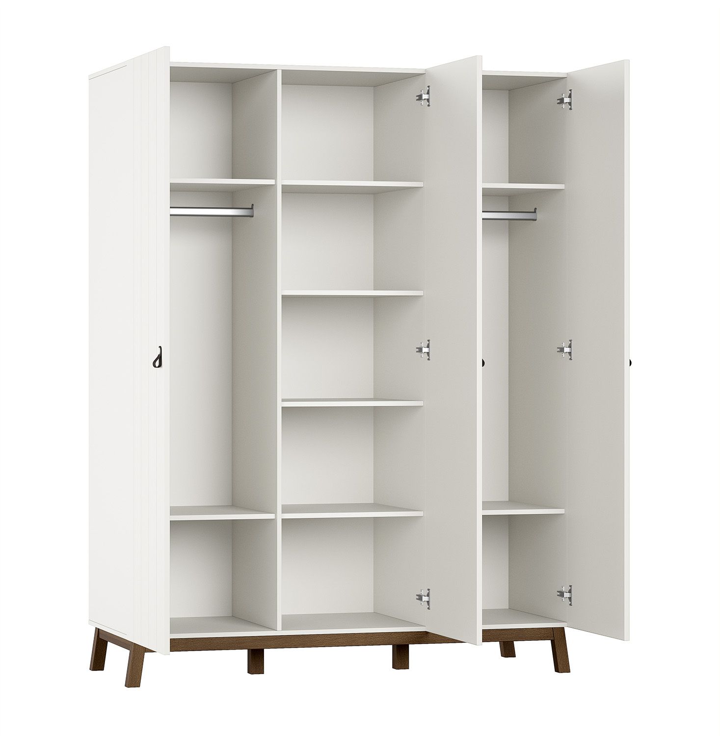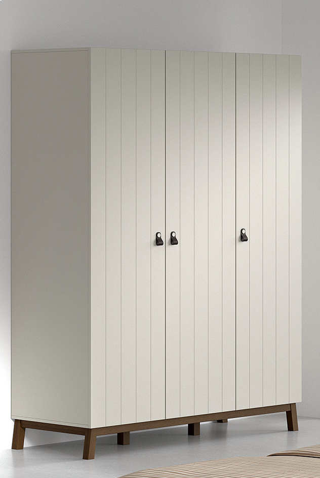 De 3-deurs kleerkast uit de SEZANE collectie is een praktische en stijlvolle oplossing voor dagelijks gebruik. Links en rechts beschikt de kast over een hangrail met twee legplanken, terwijl het middelste gedeelte voorzien is van vier ruime legplanken. Zo is er meer dan voldoende plaats voor het netjes opbergen van kleding, accessoires en beddengoed.