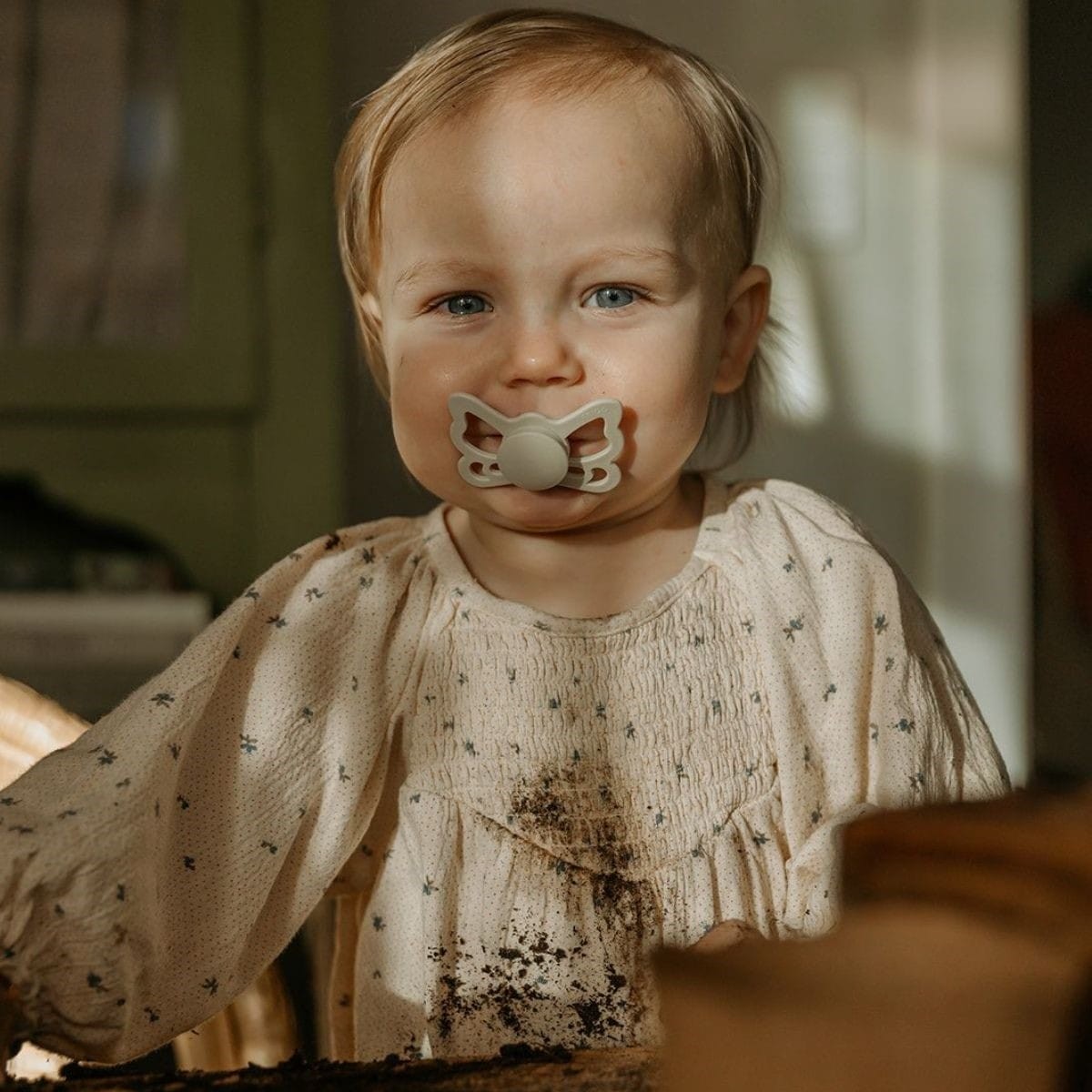 FRIGG Butterfly is anatomisch met een speen die de vorm van de mond weerspiegelt. Het is ontworpen om de druk op het gehemelte en tandvlees te minimaliseren, wat het risico op scheve tanden vermindert en een goede ontwikkeling van de mond en kaak van de baby ondersteunt.