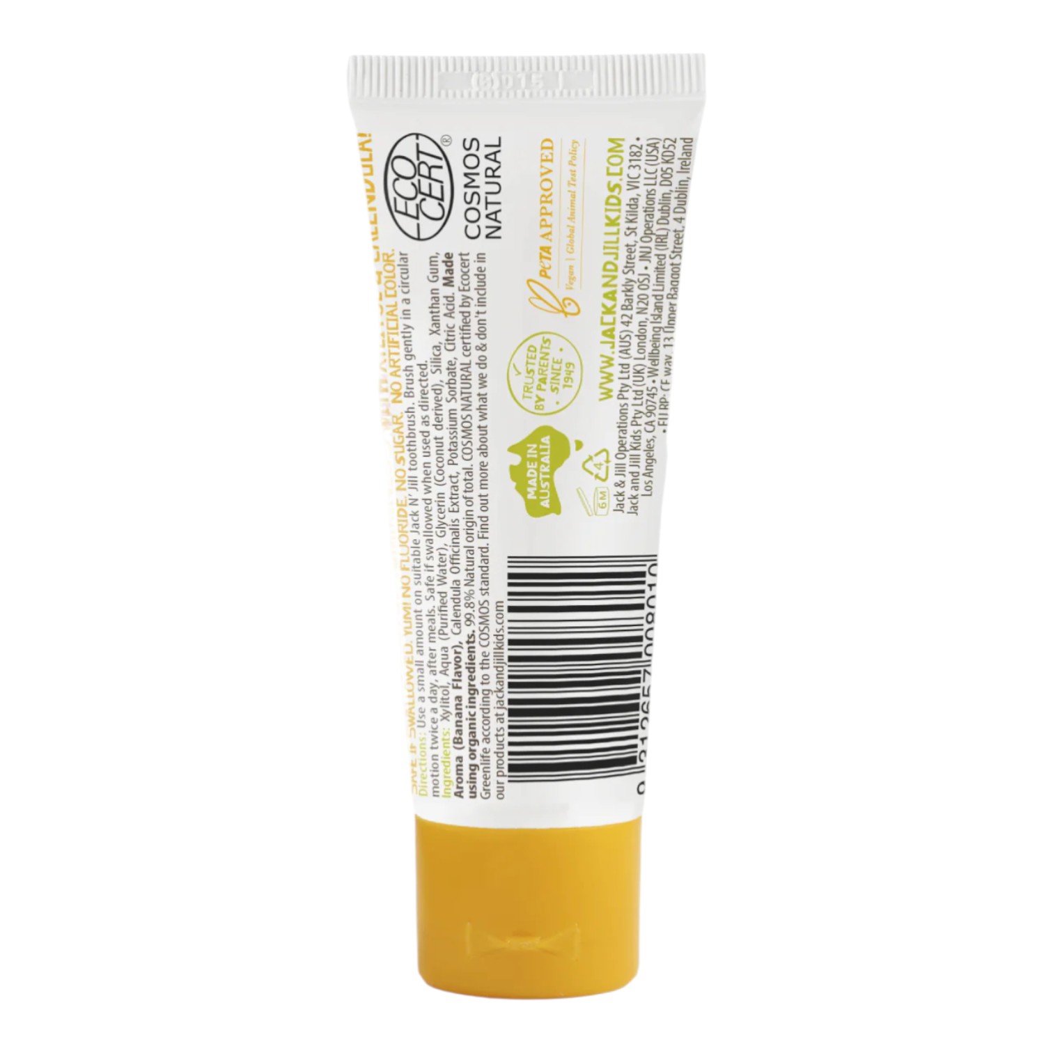 Jack N' Jill Tandpasta maakt tandenpoetsen leuk, veilig en natuurlijk voor je kleintje. Deze fluoridevrije gelformule is geschikt vanaf 6 maanden, wanneer de eerste tandjes doorkomen, en is veilig bij inslikken volgens de gebruiksaanwijzing.