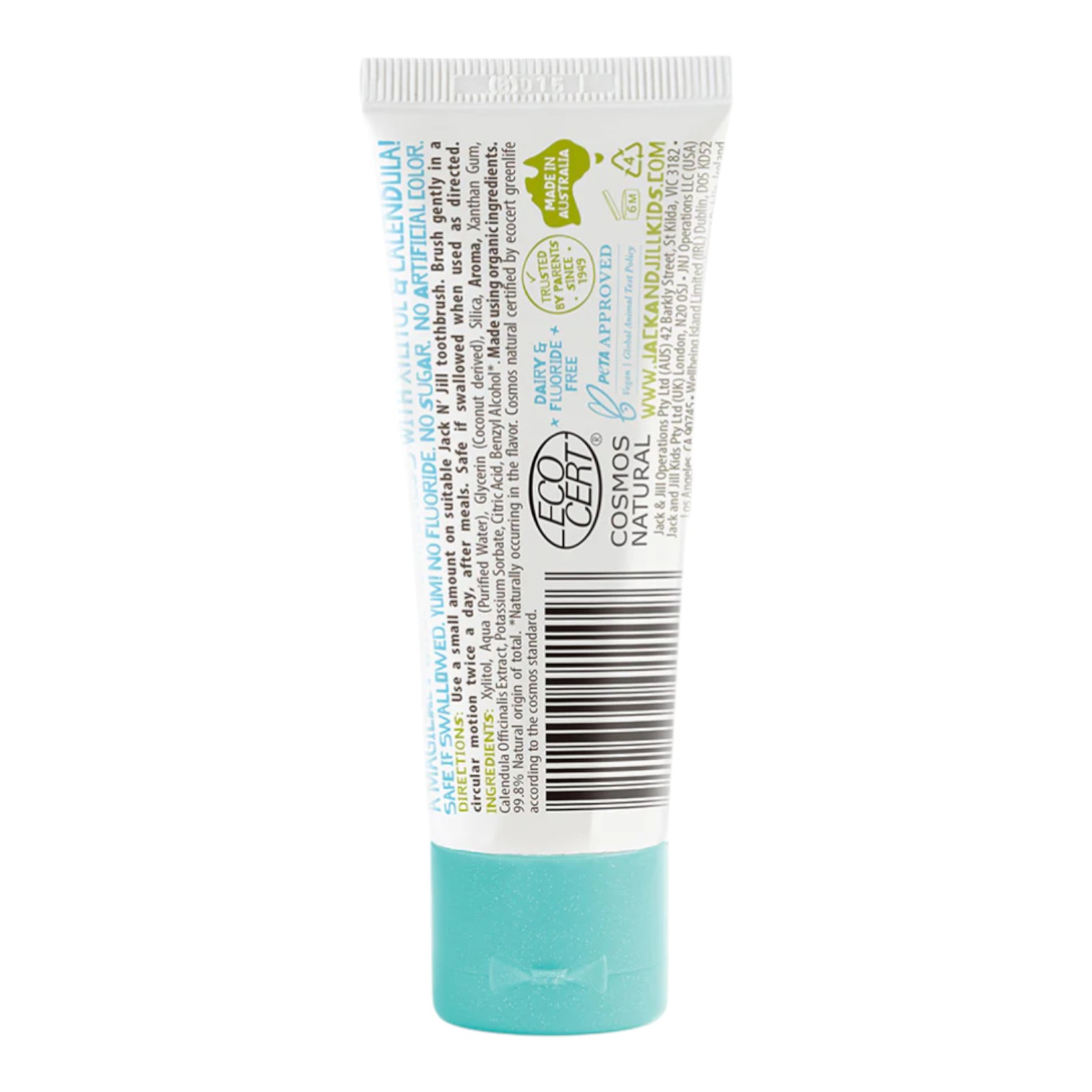 Jack N' Jill Tandpasta maakt tandenpoetsen leuk, veilig en natuurlijk voor je kleintje. Deze fluoridevrije gelformule is geschikt vanaf 6 maanden, wanneer de eerste tandjes doorkomen, en is veilig bij inslikken volgens de gebruiksaanwijzing.