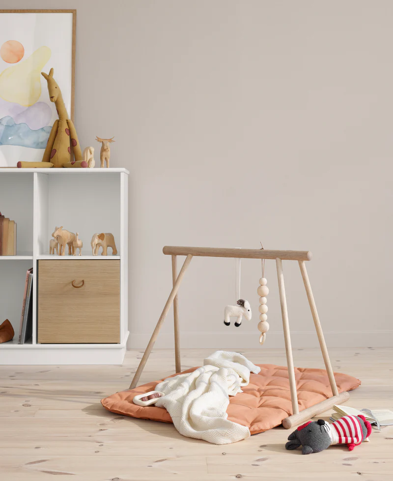De Oliver Furniture Wood babygym creëert een knusse speelplek waar je baby spelenderwijs zijn of haar oog-handcoördinatie kan ontwikkelen. Hang het favoriete speelgoed aan het stijlvolle houten speelrek en laat je kleintje kijken, grijpen en ontdekken. Dankzij de 5 langwerpige openingen wissel je eenvoudig van activiteitenspeeltjes, zodat de babygym met je kind kan meegroeien. Het stevige houten design uit de Wood Collection, met afgeronde vormen en strakke lijnen, zorgt voor een tijdloze en duurzame toevoeging aan elke babykamer.