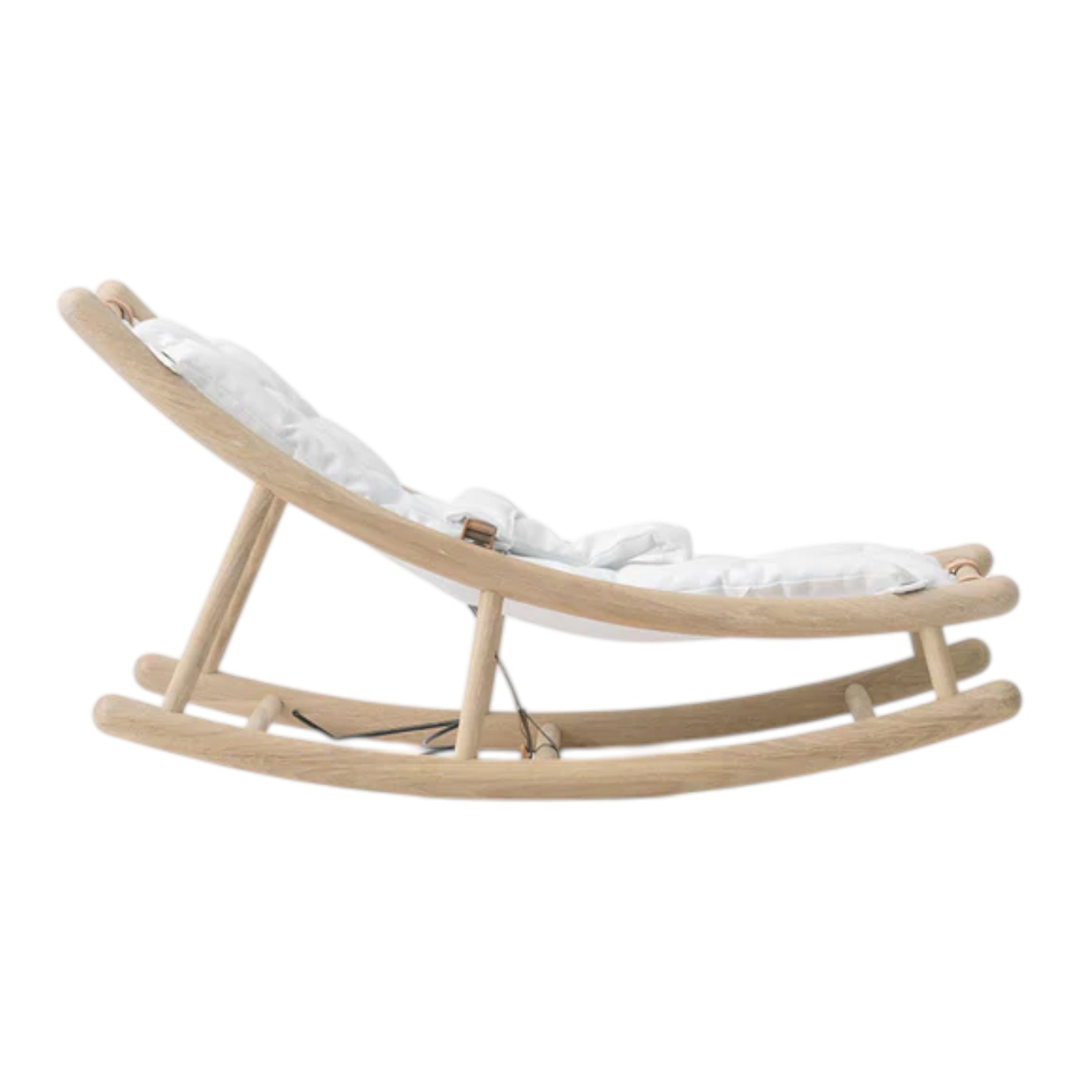 Dankzij het afneembare babykussen groeit de schommelstoel eenvoudig mee van baby tot peuter. Zo verandert de stoel in een comfortabele peuterschommelstoel waar kinderen tot ongeveer 7 jaar plezier van hebben. Een tijdloos meubelstuk dat design, comfort en duurzaamheid perfect combineert.