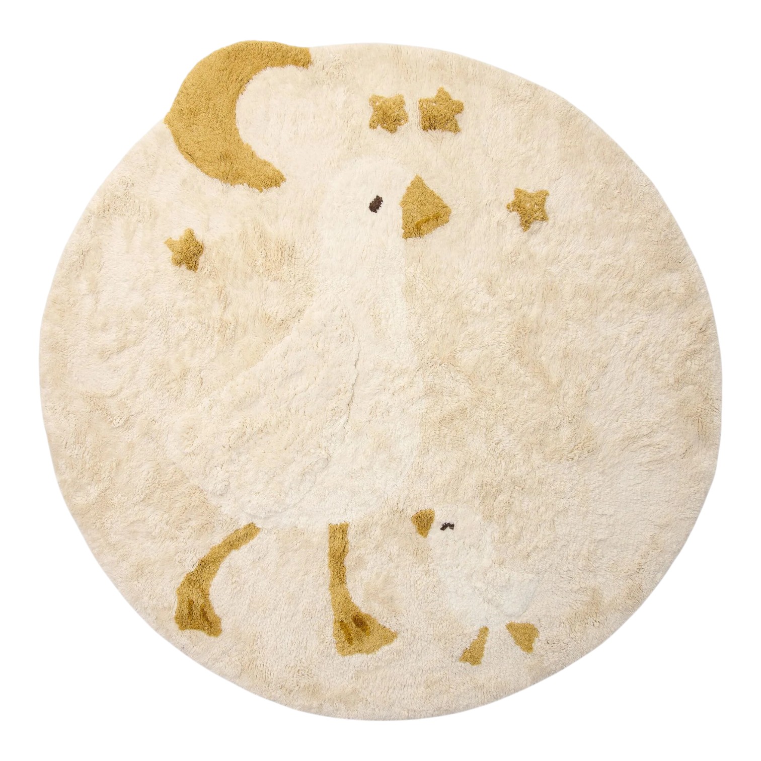 Breng een vleugje magie in de kinderkamer met dit dromerige ronde vloerkleed van Little Dutch. Het ontwerp met twee lieve ganzen, een maan en fonkelende sterren zorgt voor een warme en speelse sfeer. Het zachte materiaal is heerlijk comfortabel voor kleine voetjes en perfect om op te spelen of te ontspannen. Een gezellige en stijlvolle toevoeging aan elke baby- of kinderkamer.