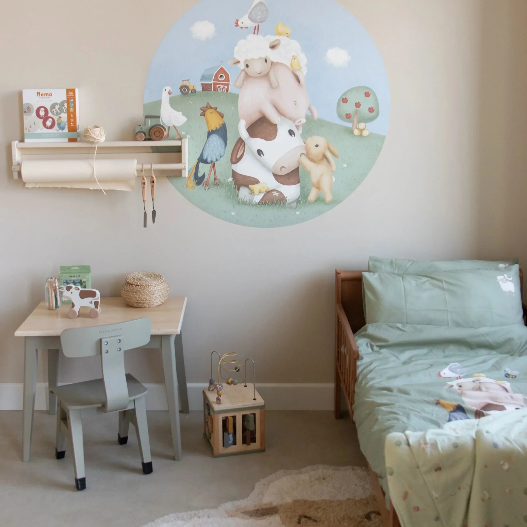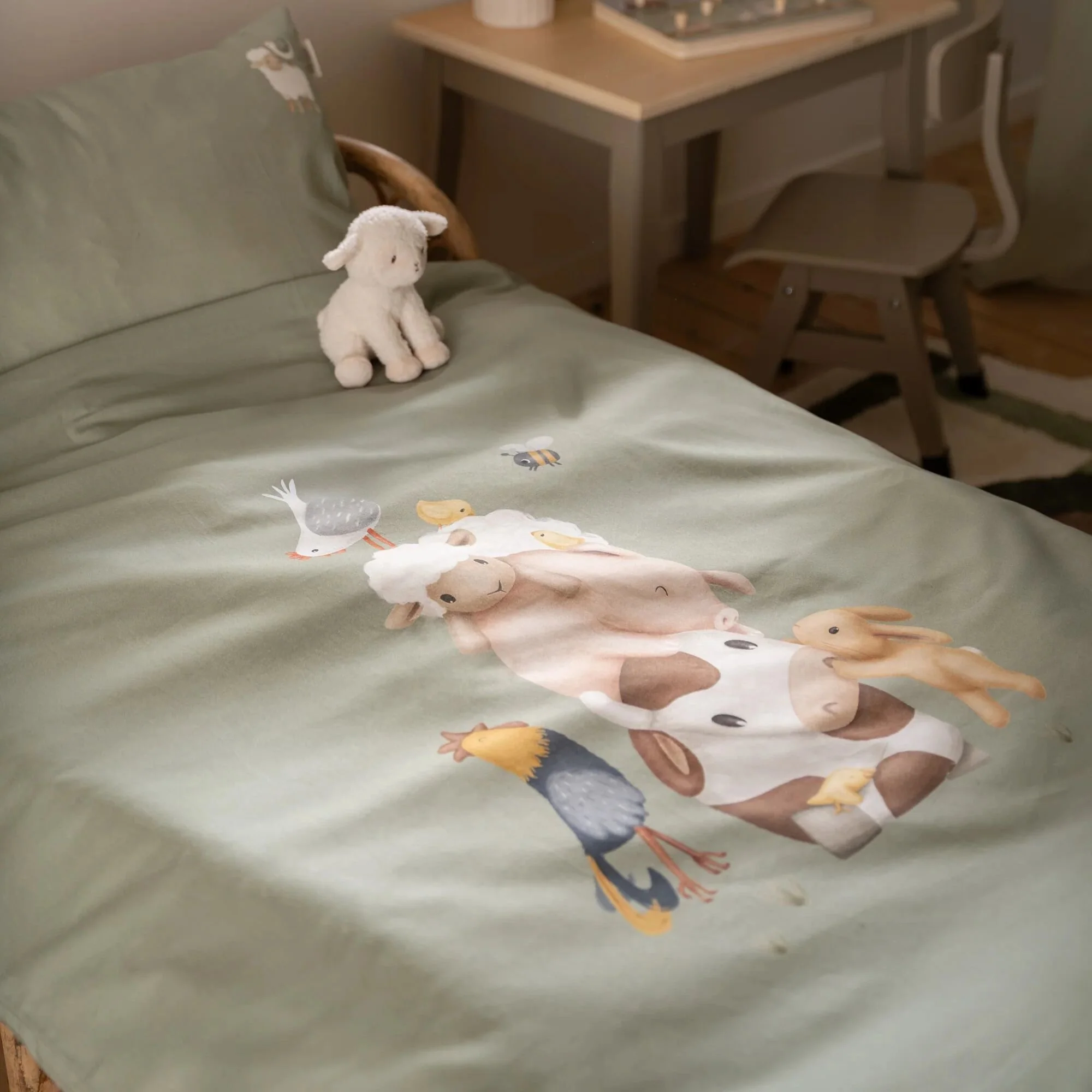 Creëer een warme en stijlvolle kinderkamer met dit prachtige dekbedovertrek met boerderijthema. Gemaakt van 100% biologisch katoen voelt het heerlijk zacht aan en is het ademend voor een comfortabele nachtrust. De rustgevende groene kleur in combinatie met een speels boerderijtafereel maakt het perfect voor kleine dierenvrienden. Met een afmeting van 110 x 140 cm en een bijpassende kussensloop van 40 x 60 cm is dit dekbedovertrek ideaal voor een gezellige en dromerige slaapomgeving.