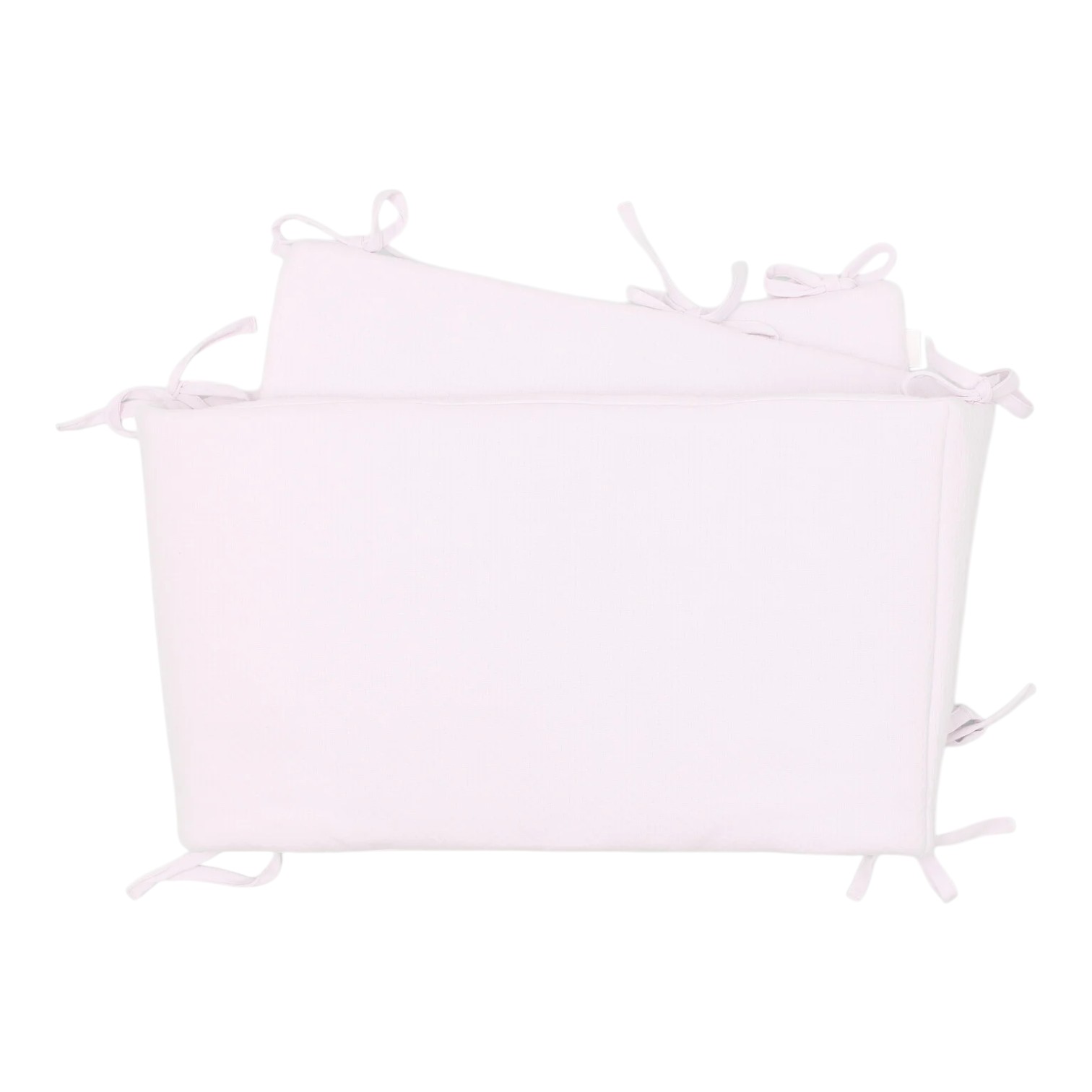 Deze zachte jersey bedomrander (bedbeschermer) zorgt ervoor dat je kindje zijn of haar hoofd niet stoot tijdens het slapen. Ook voorkomt het dat de armpjes door de spijlen van het bedje kunnen steken.