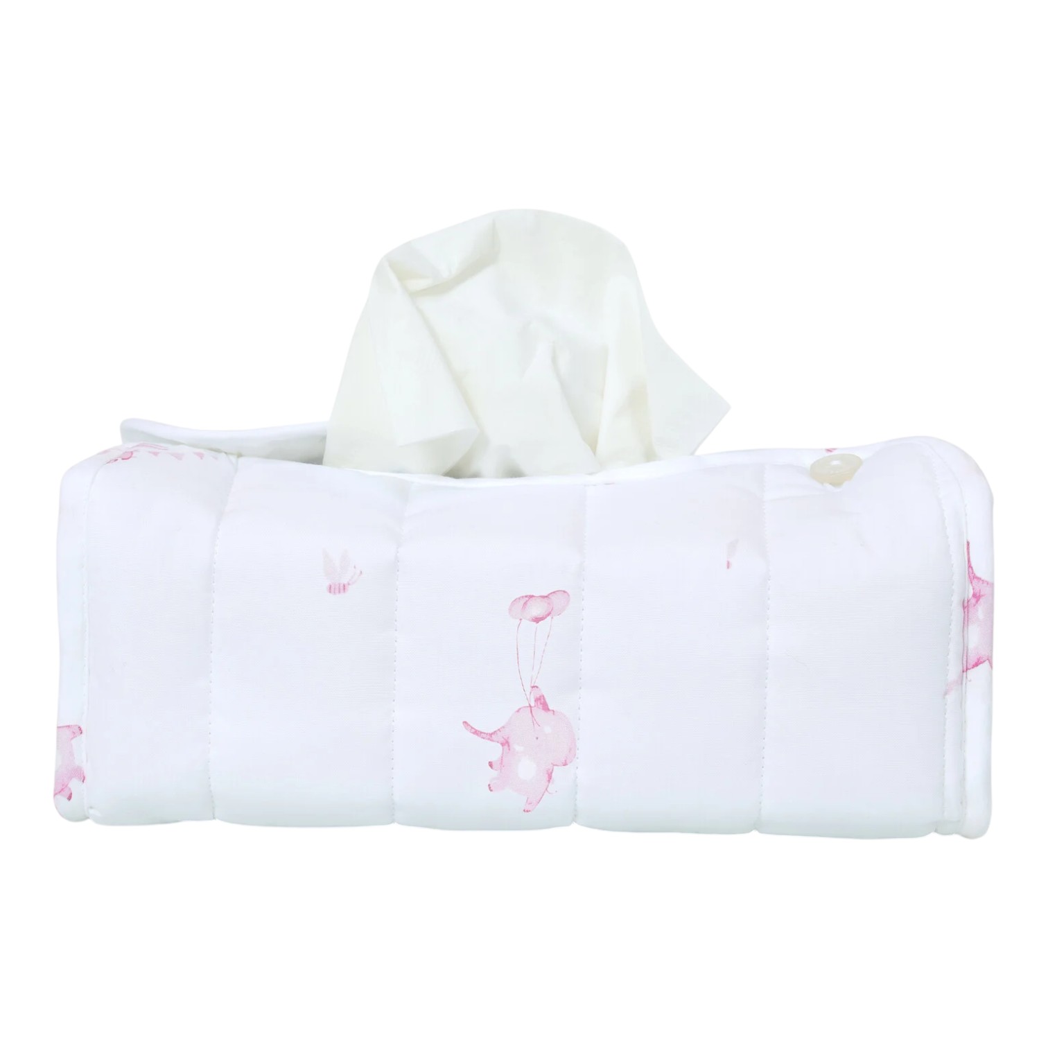 Geef je babykamer een stijlvolle touch met deze hoes voor je tissue box. De Pink Dreams-print voegt een elegant detail toe en combineert functionaliteit met een verfijnde uitstraling.